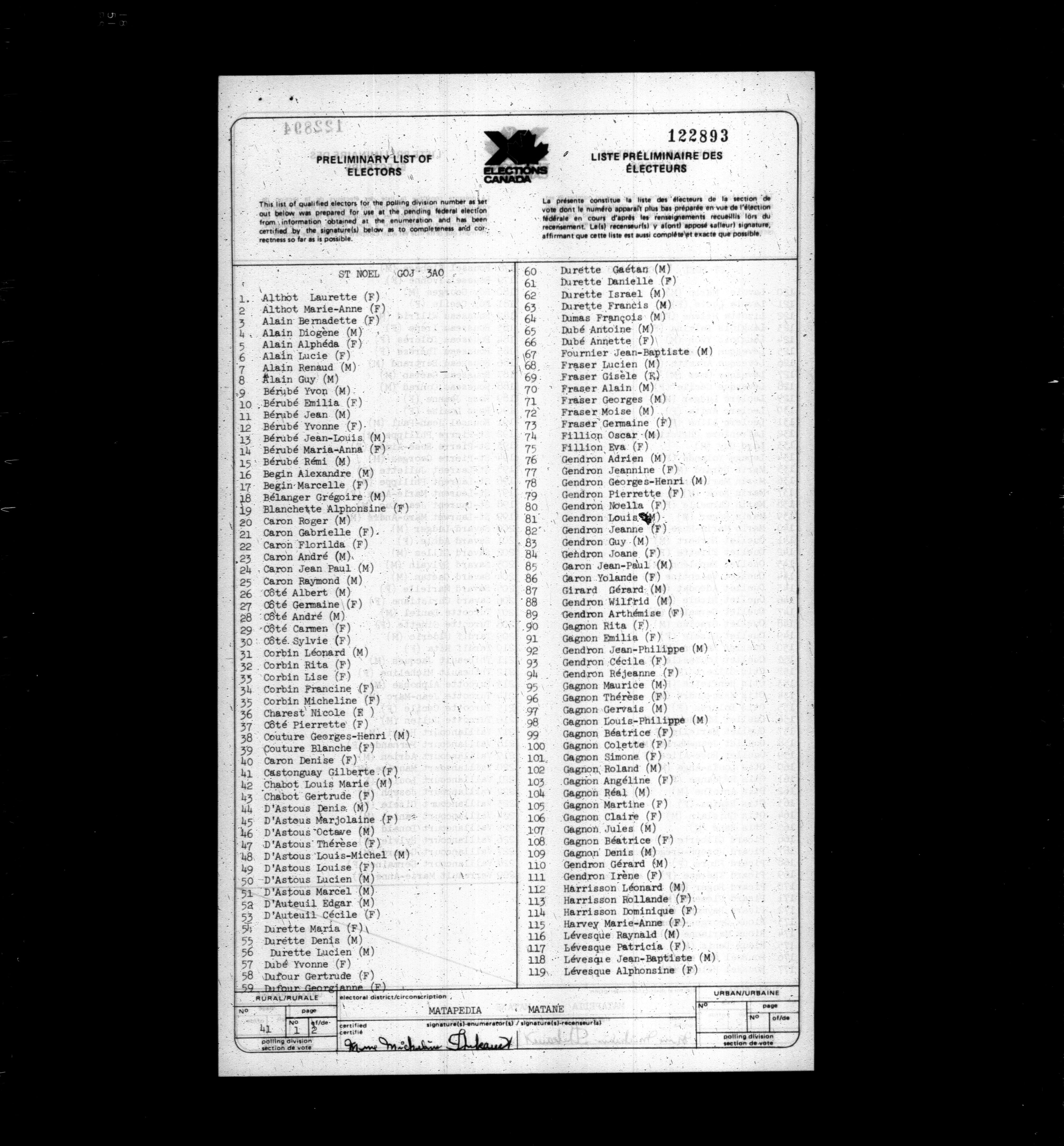 Voters' lists Québec, 1979 - 626
