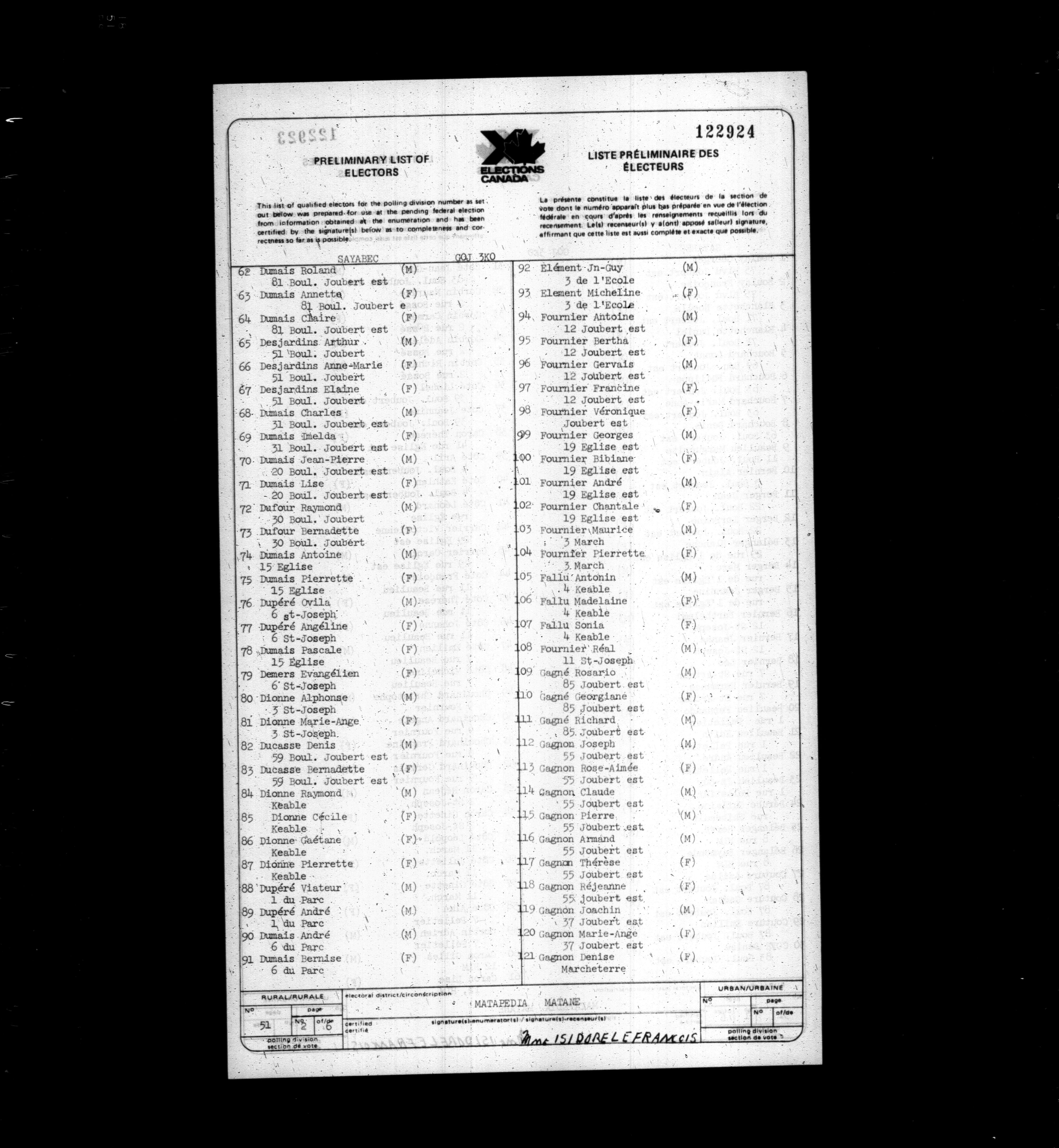 Voters' lists Québec, 1979 - 626