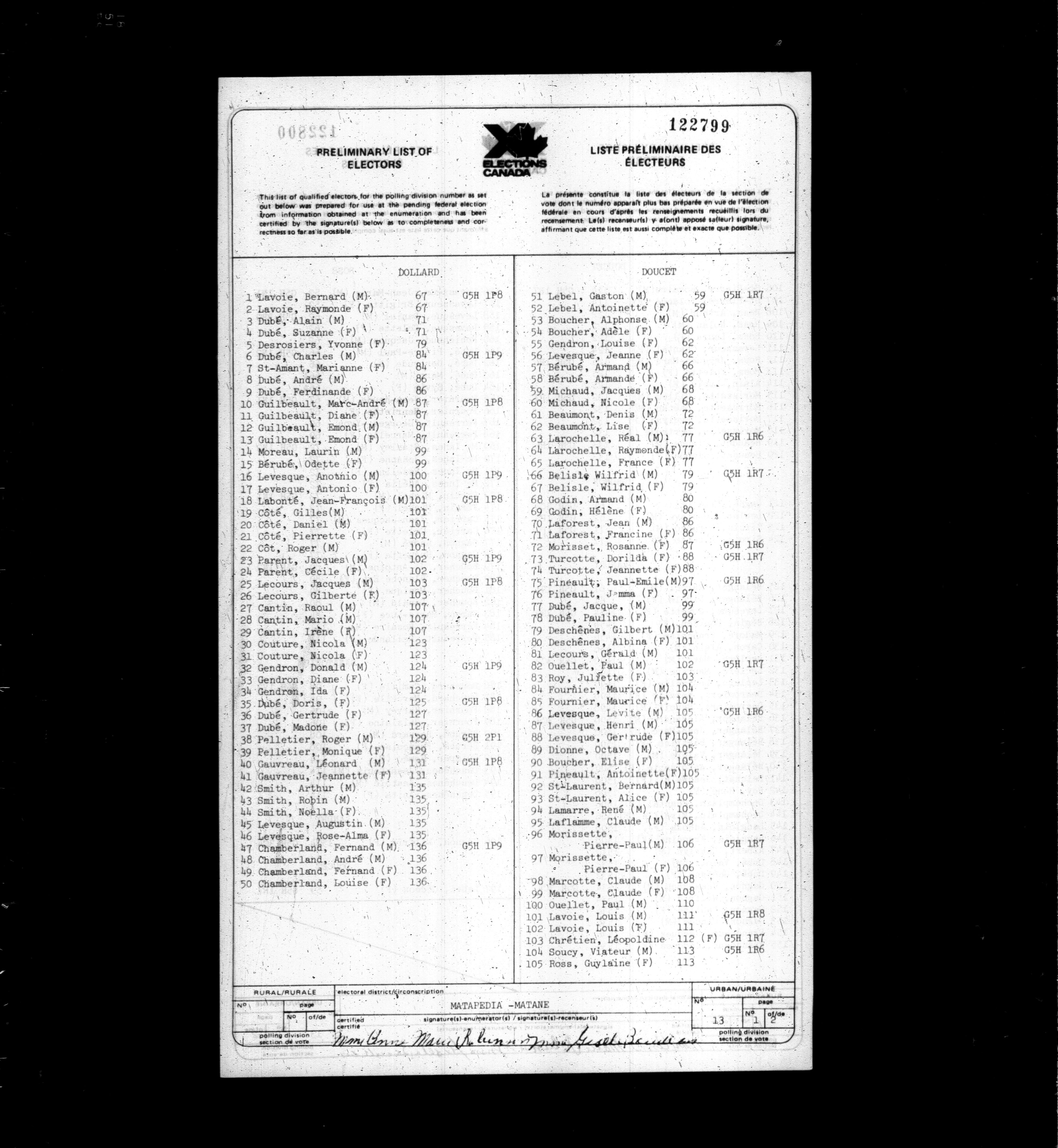 Office of the Chief Electoral Officer : Preliminary List of Electors : T-626