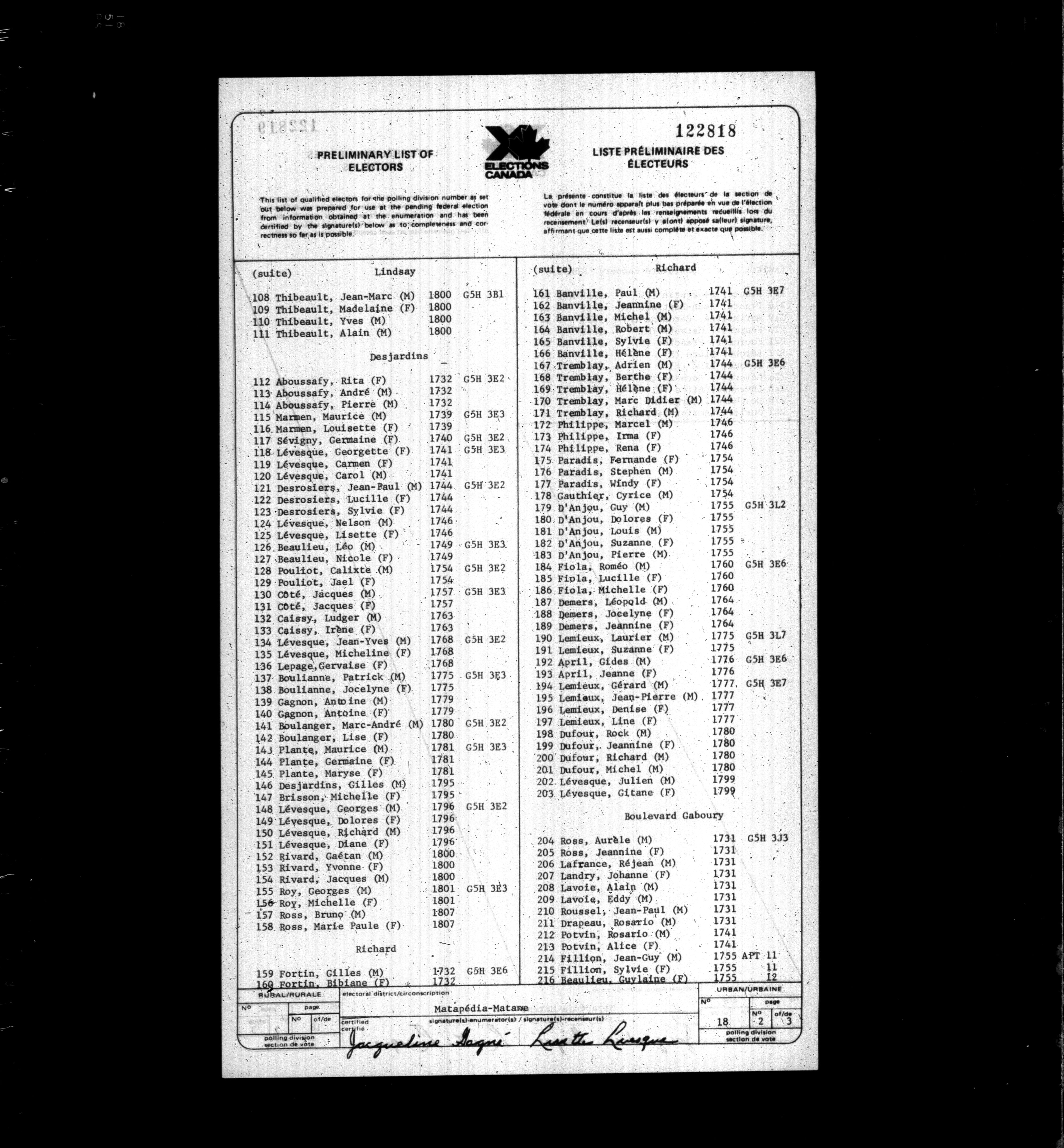 Voters' lists Québec, 1979 - 626