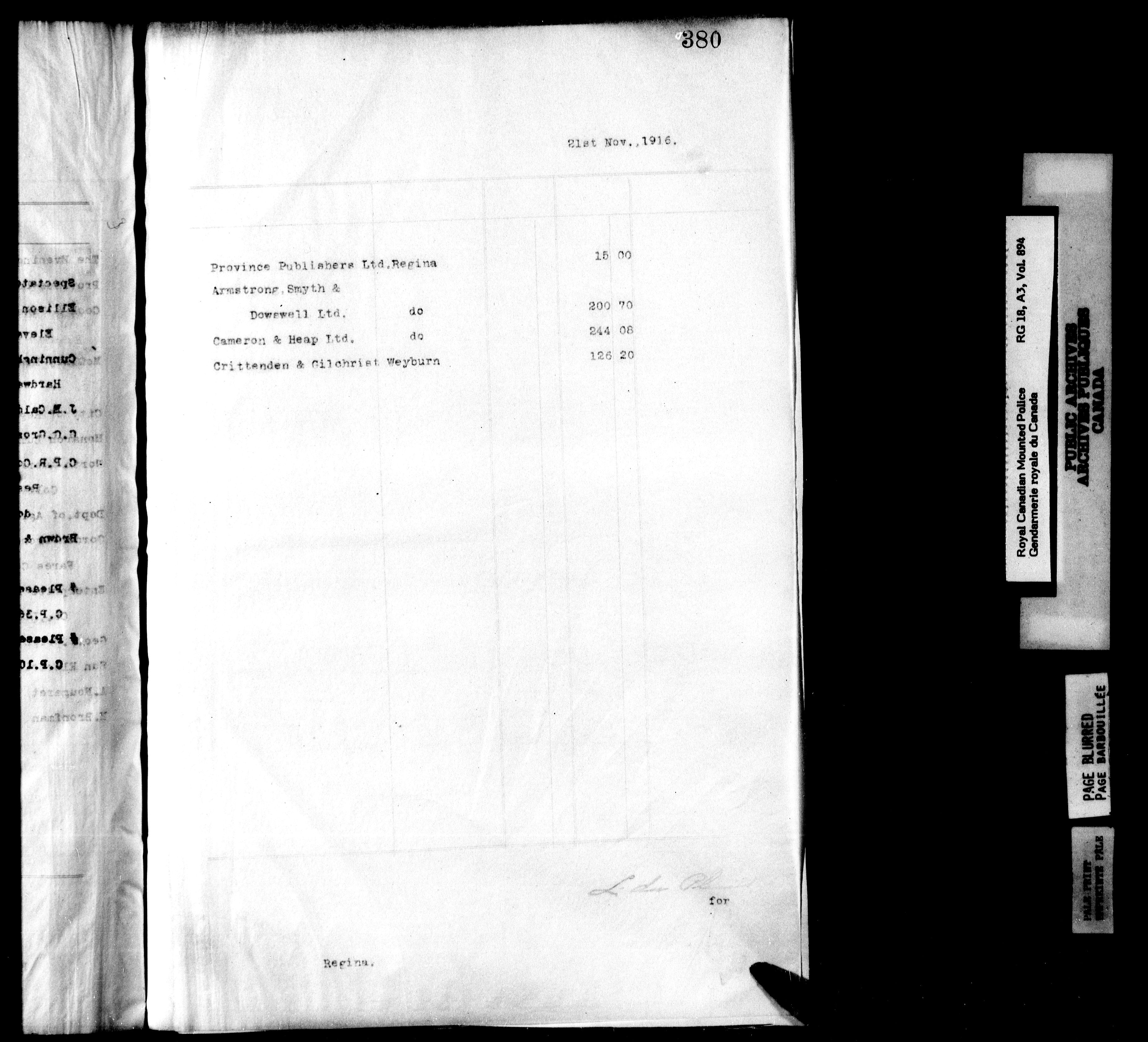 Royal Canadian Mounted Police, Office of the Comptroller : accounts, contracts and supplies - 6268
