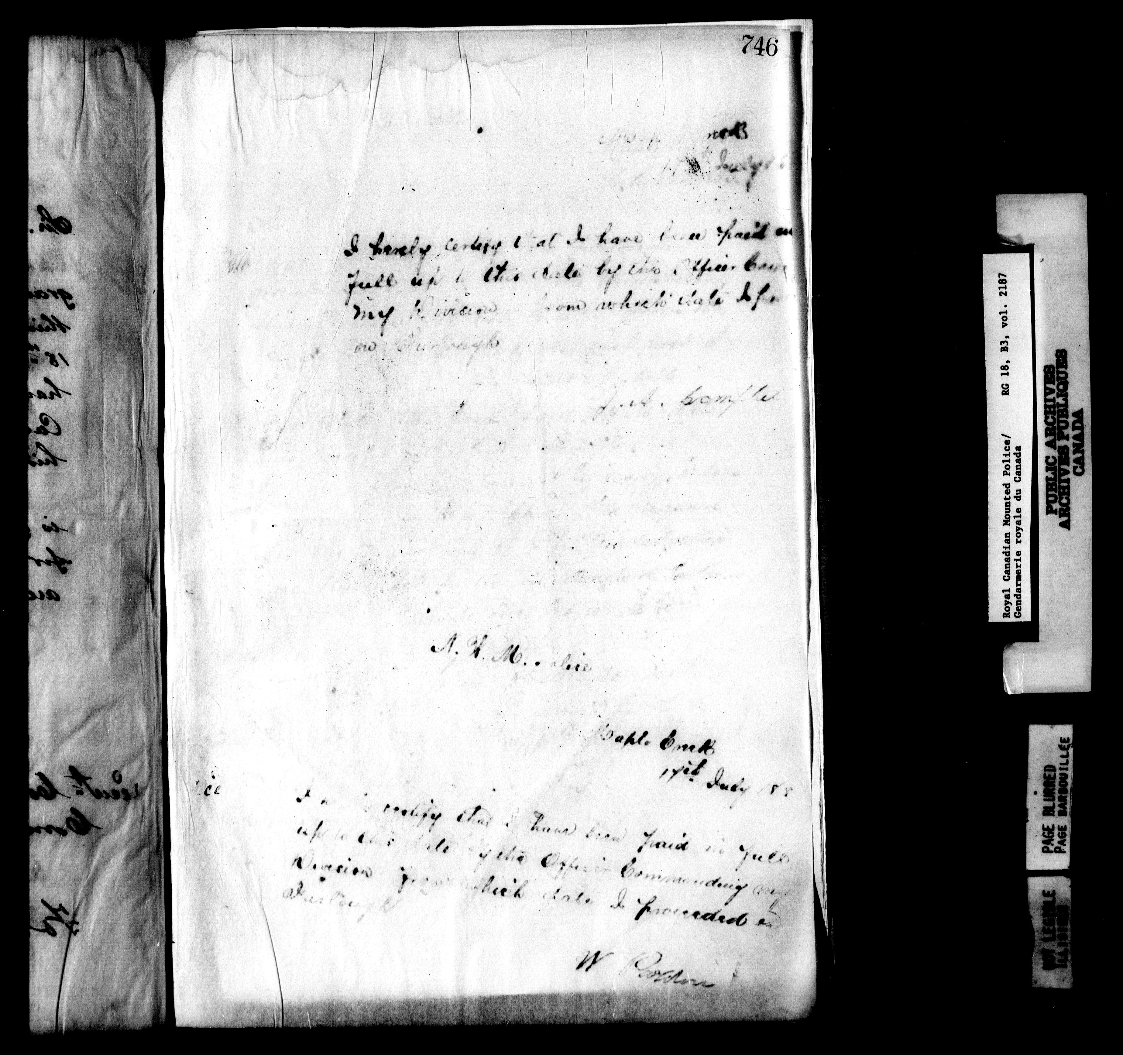 Royal Canadian Mounted Police : Letterbooks to the Comptroller (1881-1906) : T-6270
