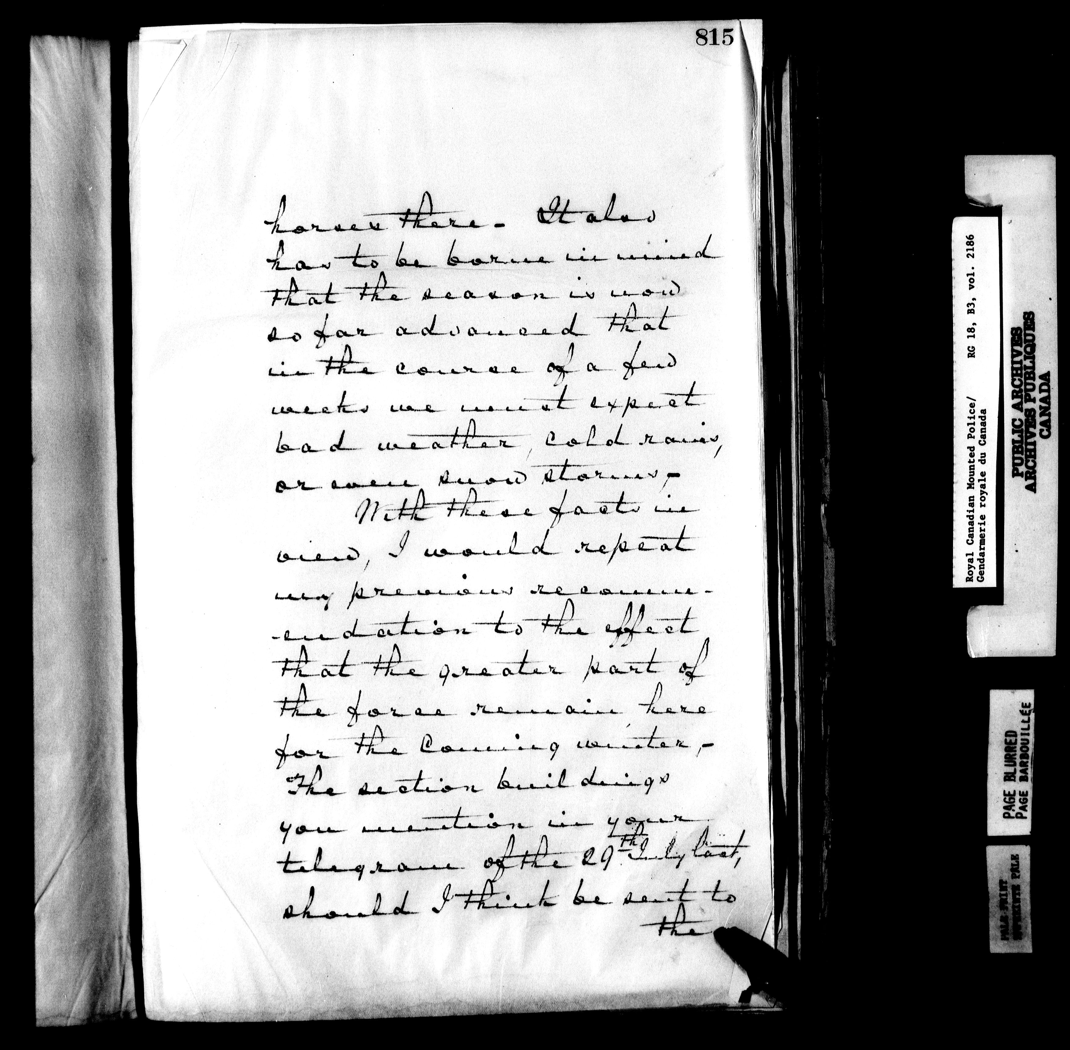 Royal Canadian Mounted Police : Letterbooks to the Comptroller (1881-1906) : T-6270