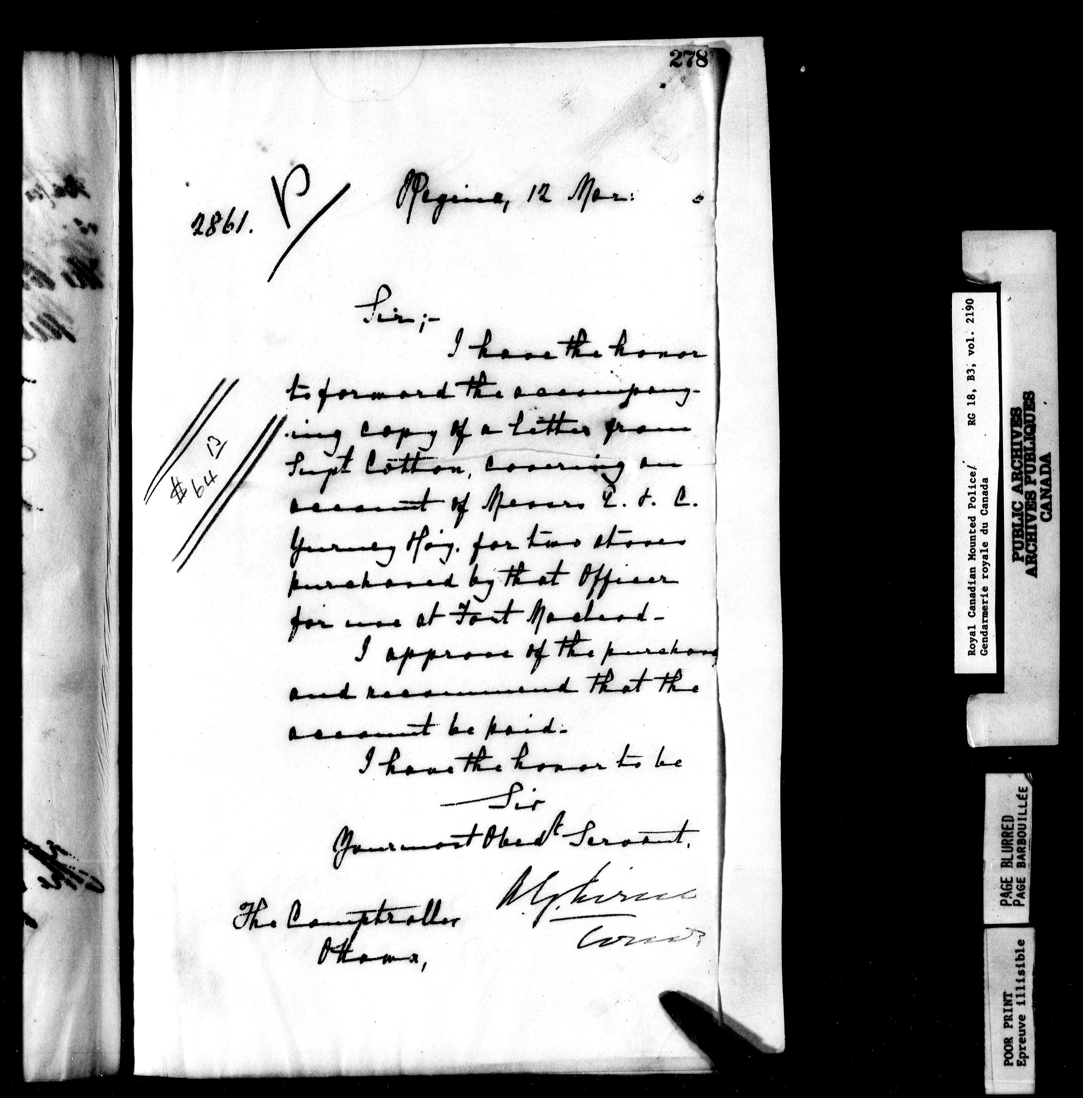 Royal Canadian Mounted Police : Letterbooks to the Comptroller (1881-1906) : T-6272