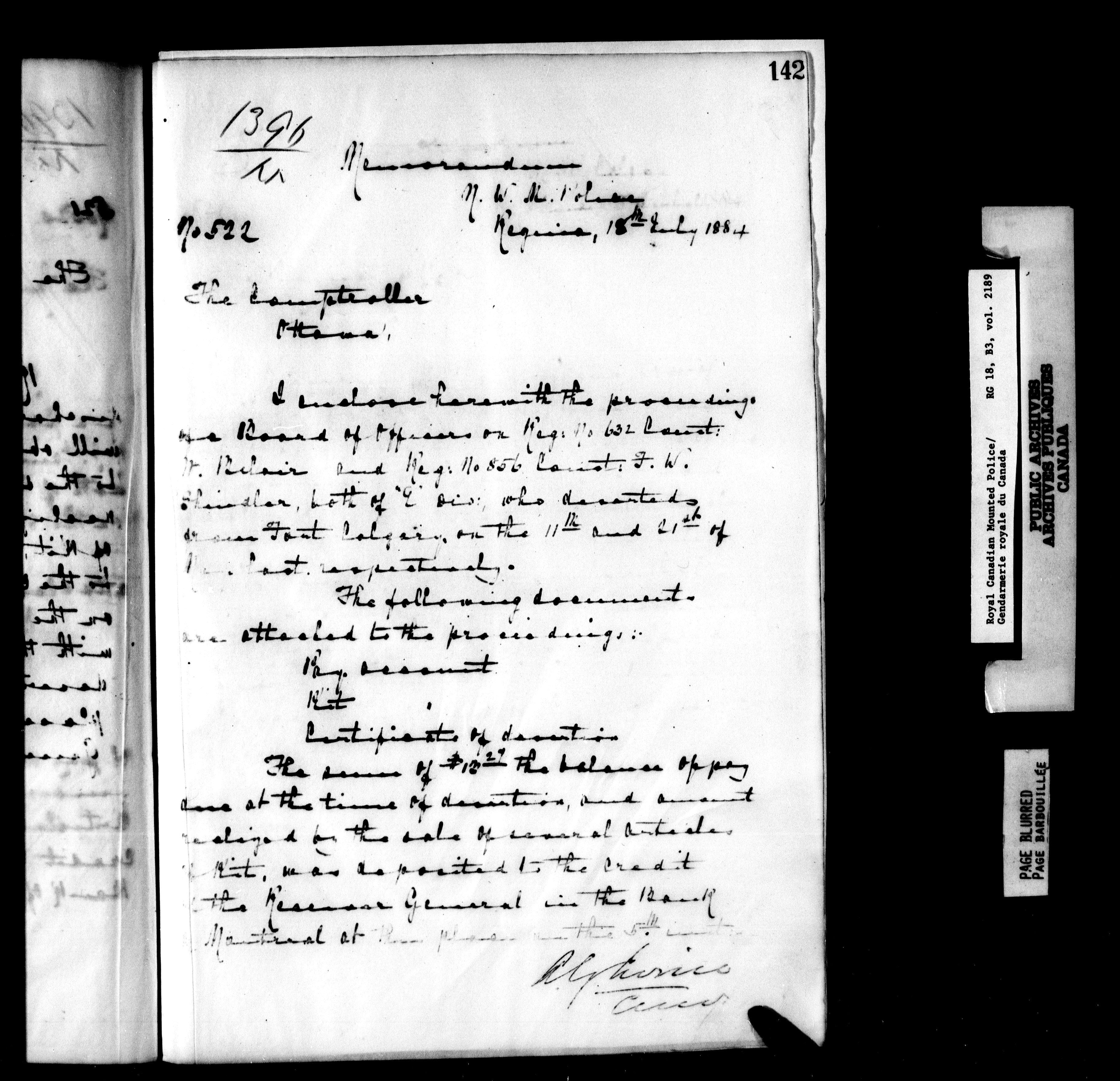 Royal Canadian Mounted Police : Letterbooks to the Comptroller (1881-1906) : T-6272