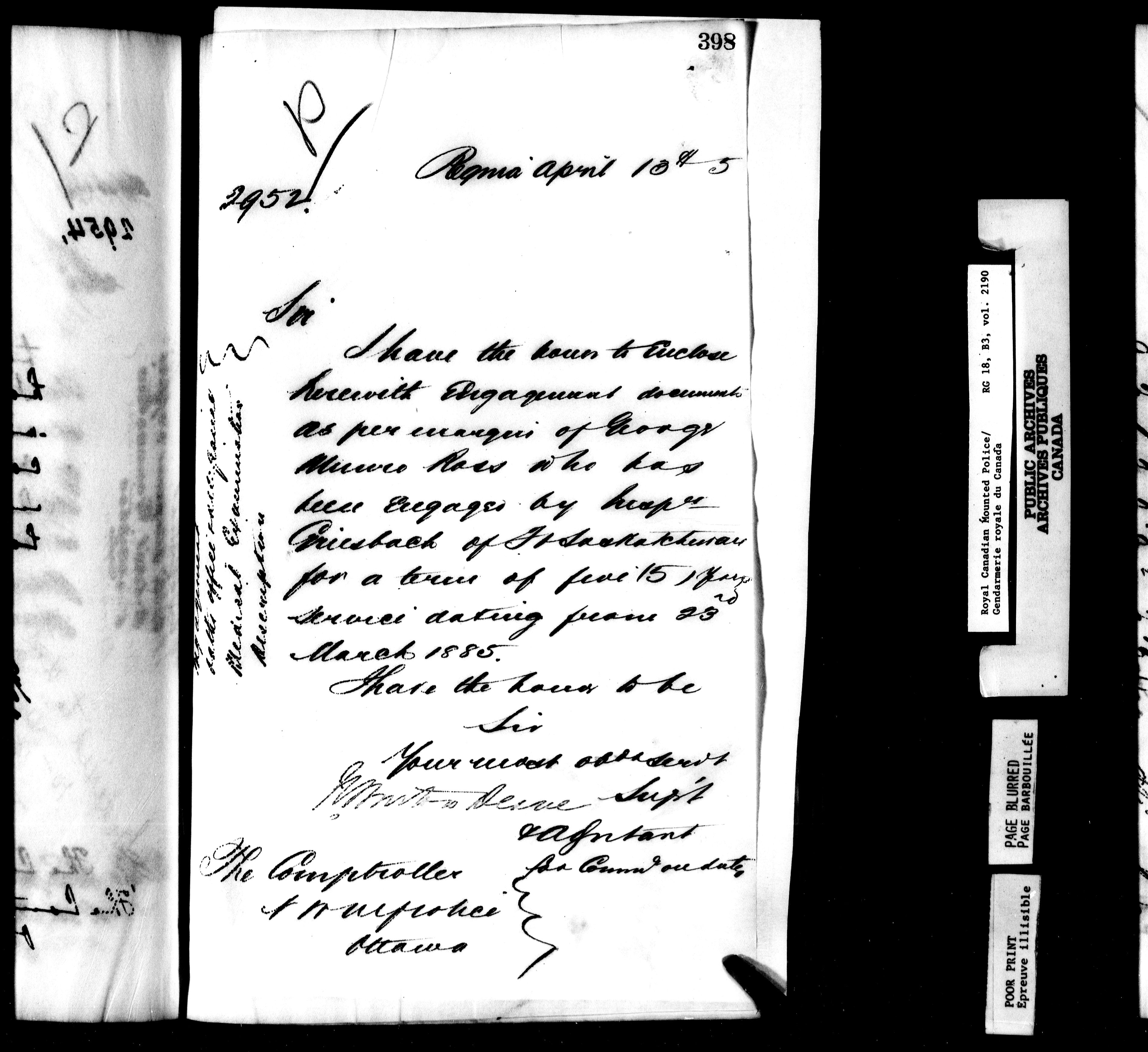 Royal Canadian Mounted Police : Letterbooks to the Comptroller (1881-1906) - 6273