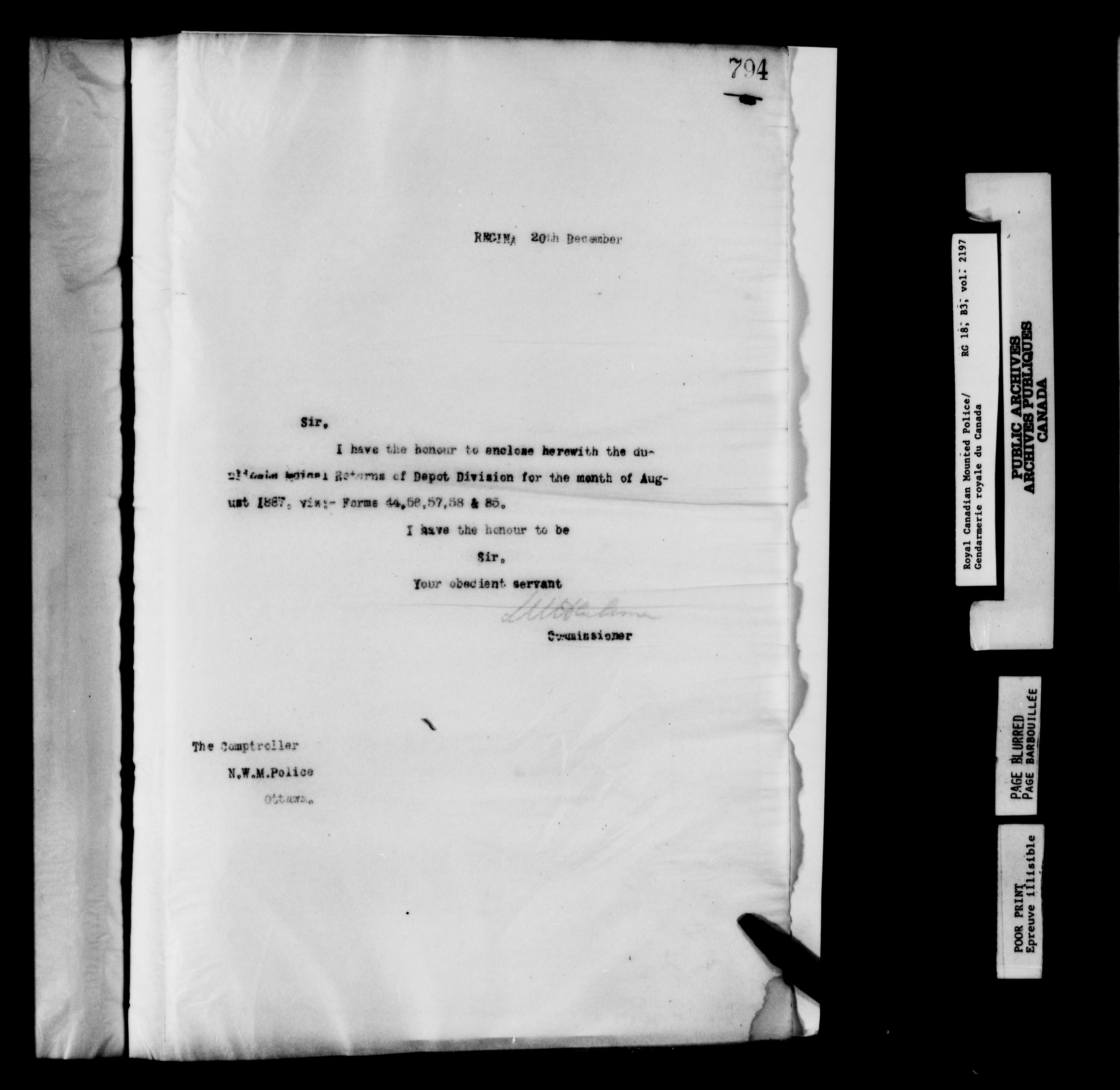 Royal Canadian Mounted Police : Letterbooks to the Comptroller (1881-1906) - 6279