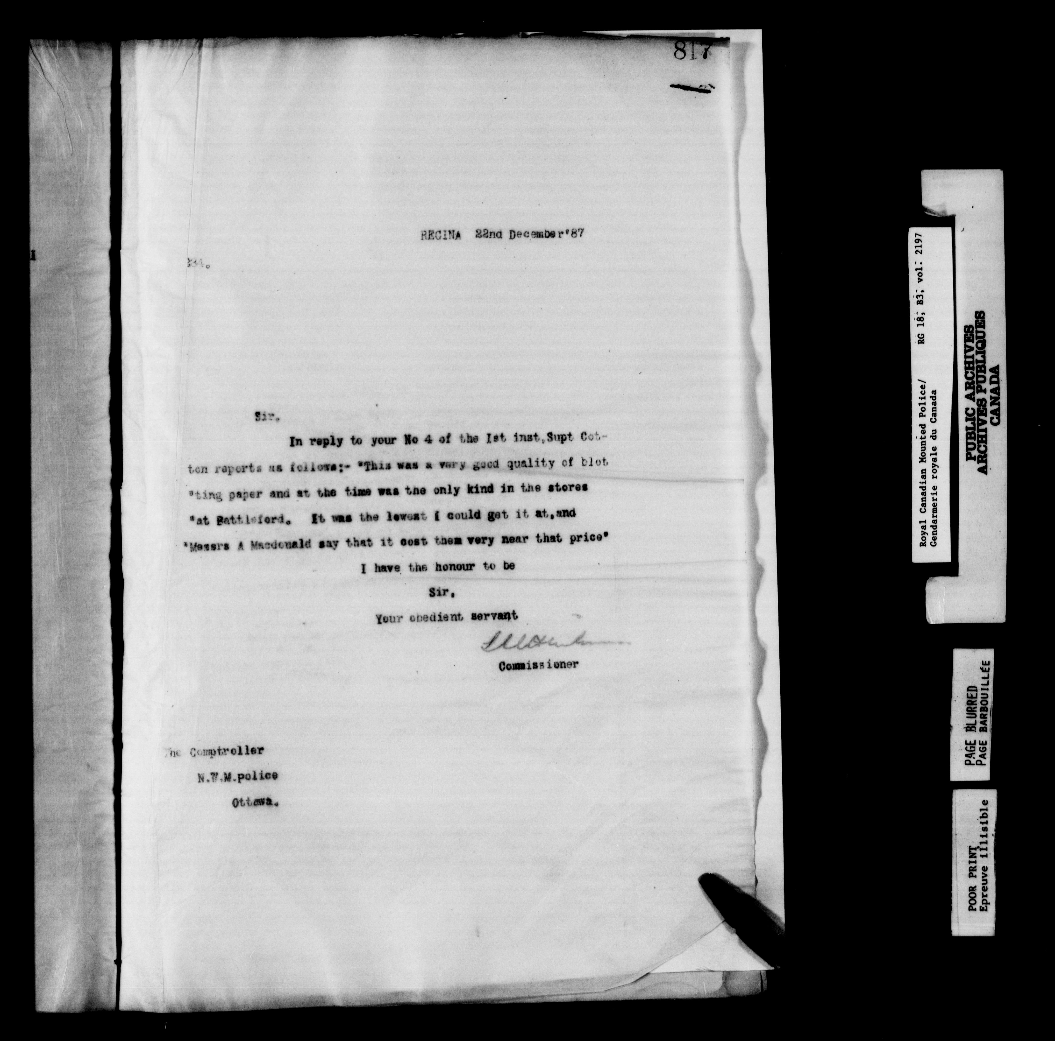 Royal Canadian Mounted Police : Letterbooks to the Comptroller (1881-1906) - 6279
