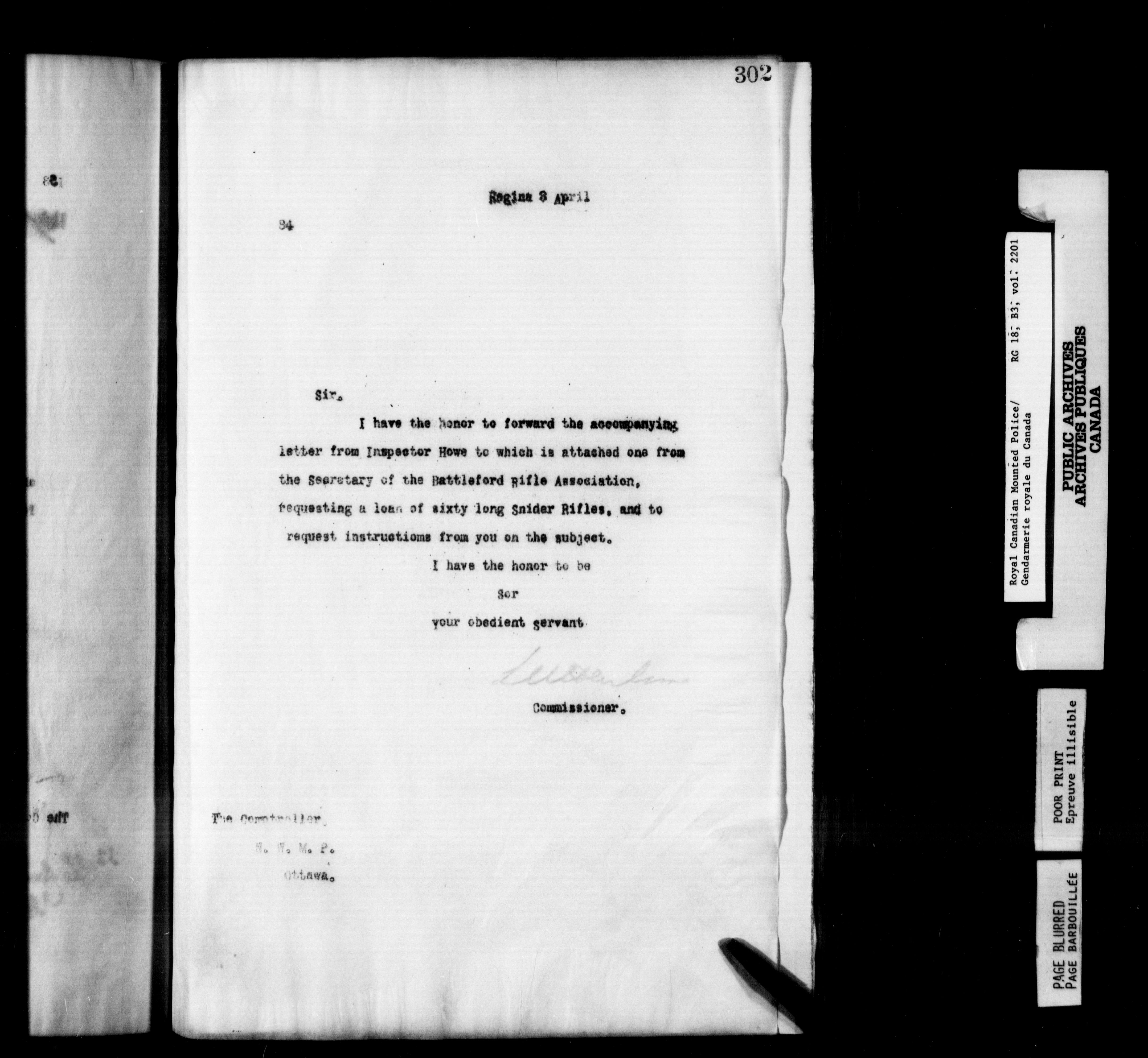 Royal Canadian Mounted Police : Letterbooks to the Comptroller (1881-1906) : T-6281
