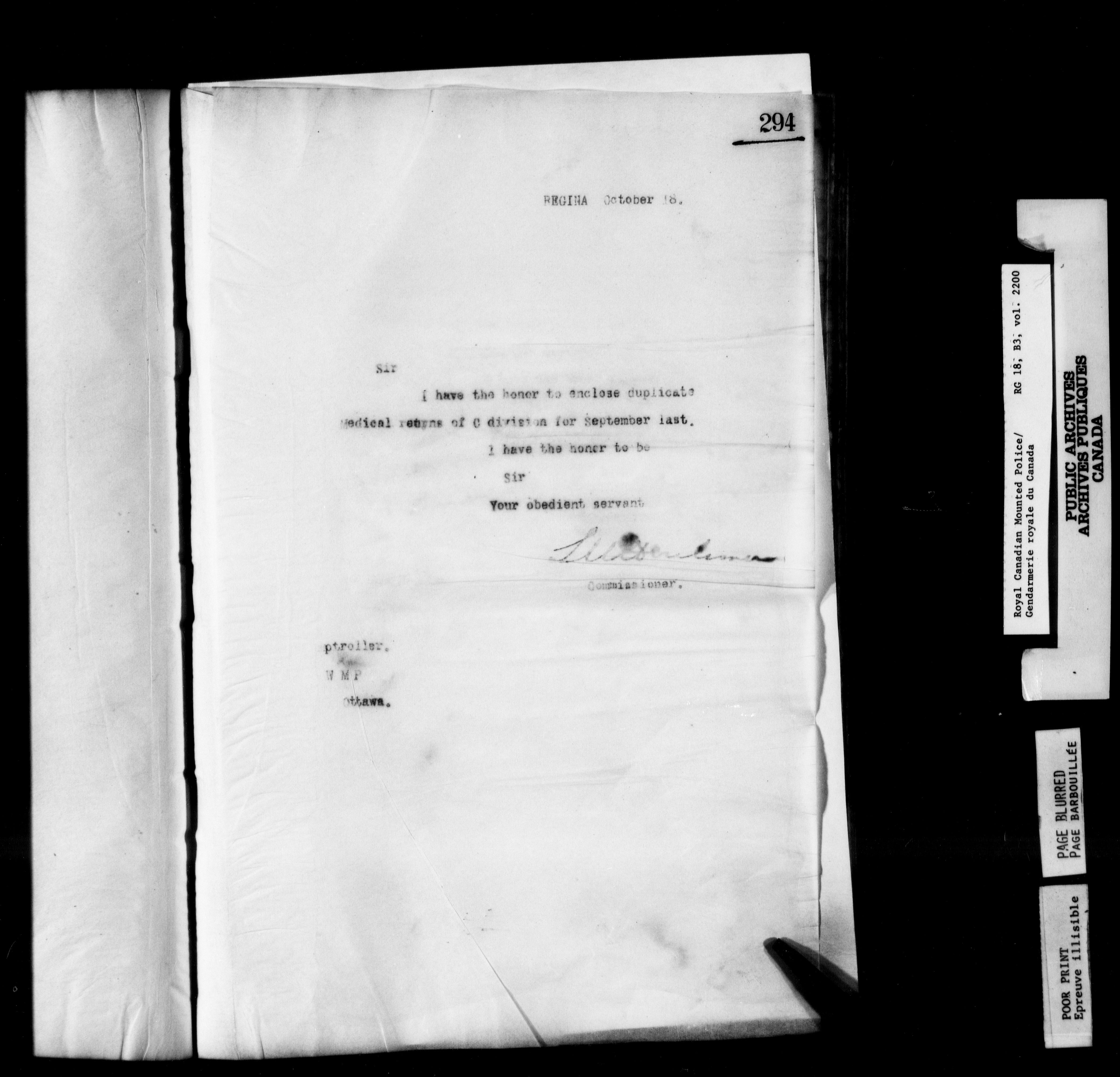 Royal Canadian Mounted Police : Letterbooks to the Comptroller (1881-1906) : T-6281