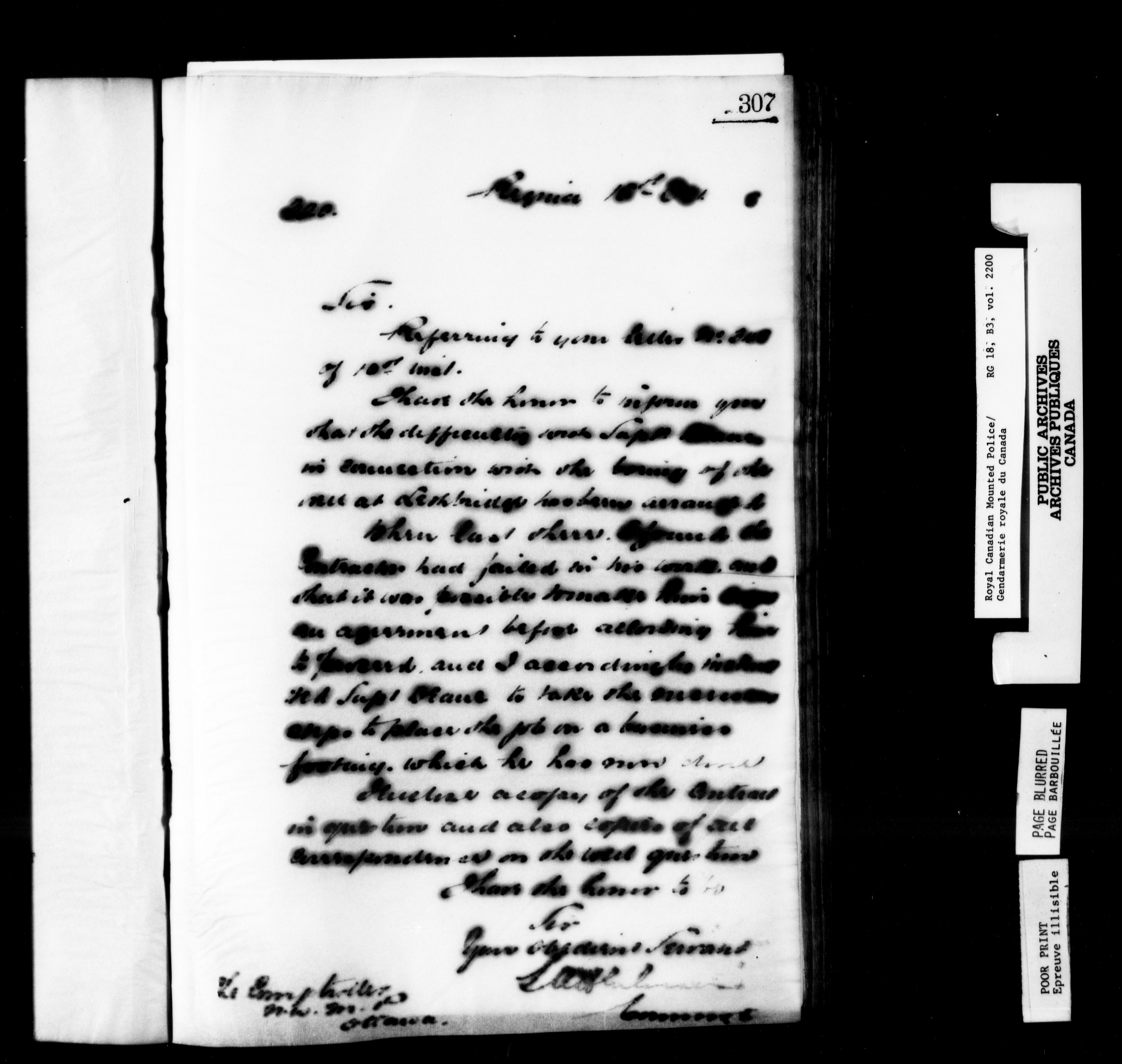 Royal Canadian Mounted Police : Letterbooks to the Comptroller (1881-1906) : T-6281