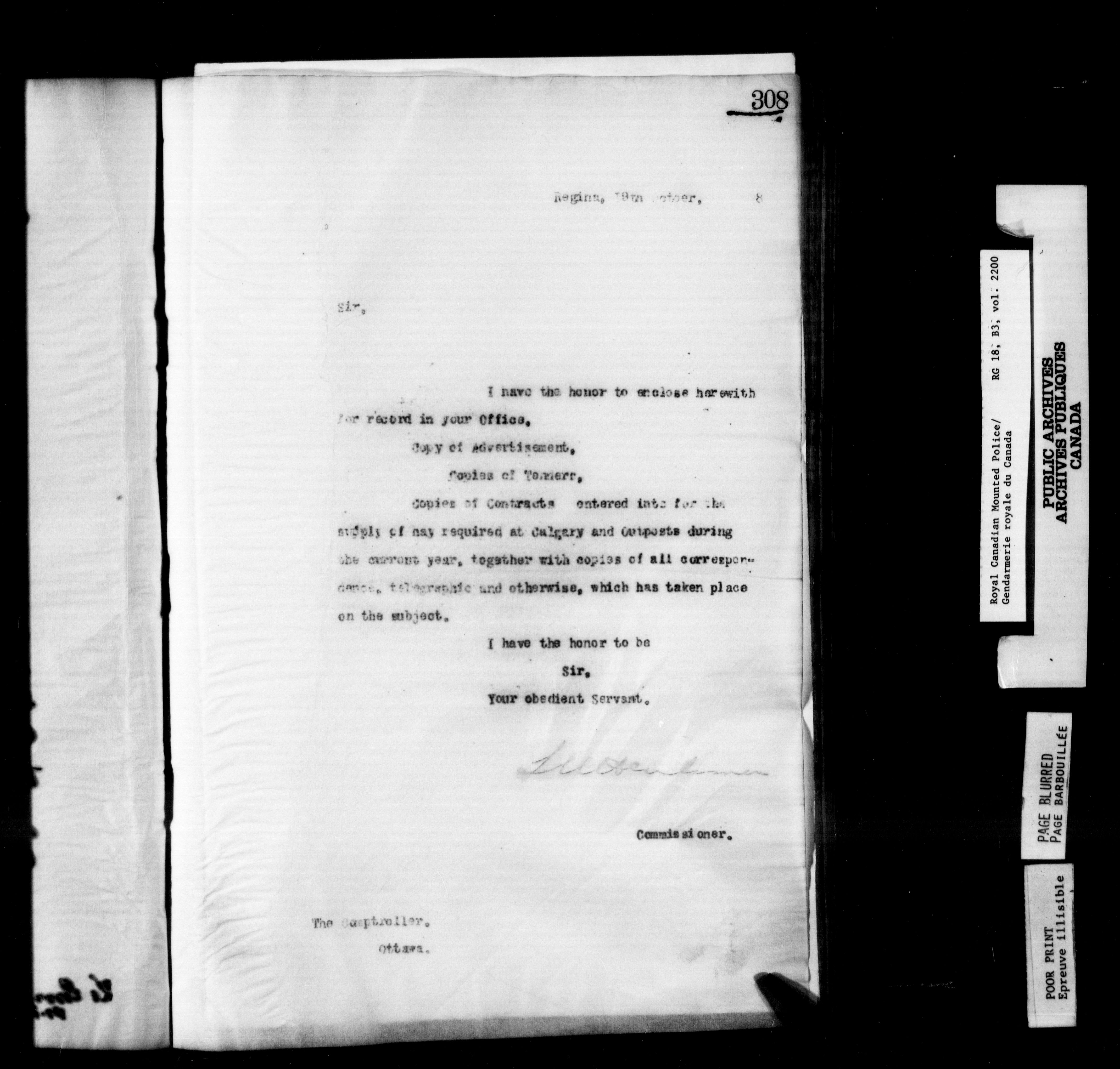 Royal Canadian Mounted Police : Letterbooks to the Comptroller (1881-1906) : T-6281