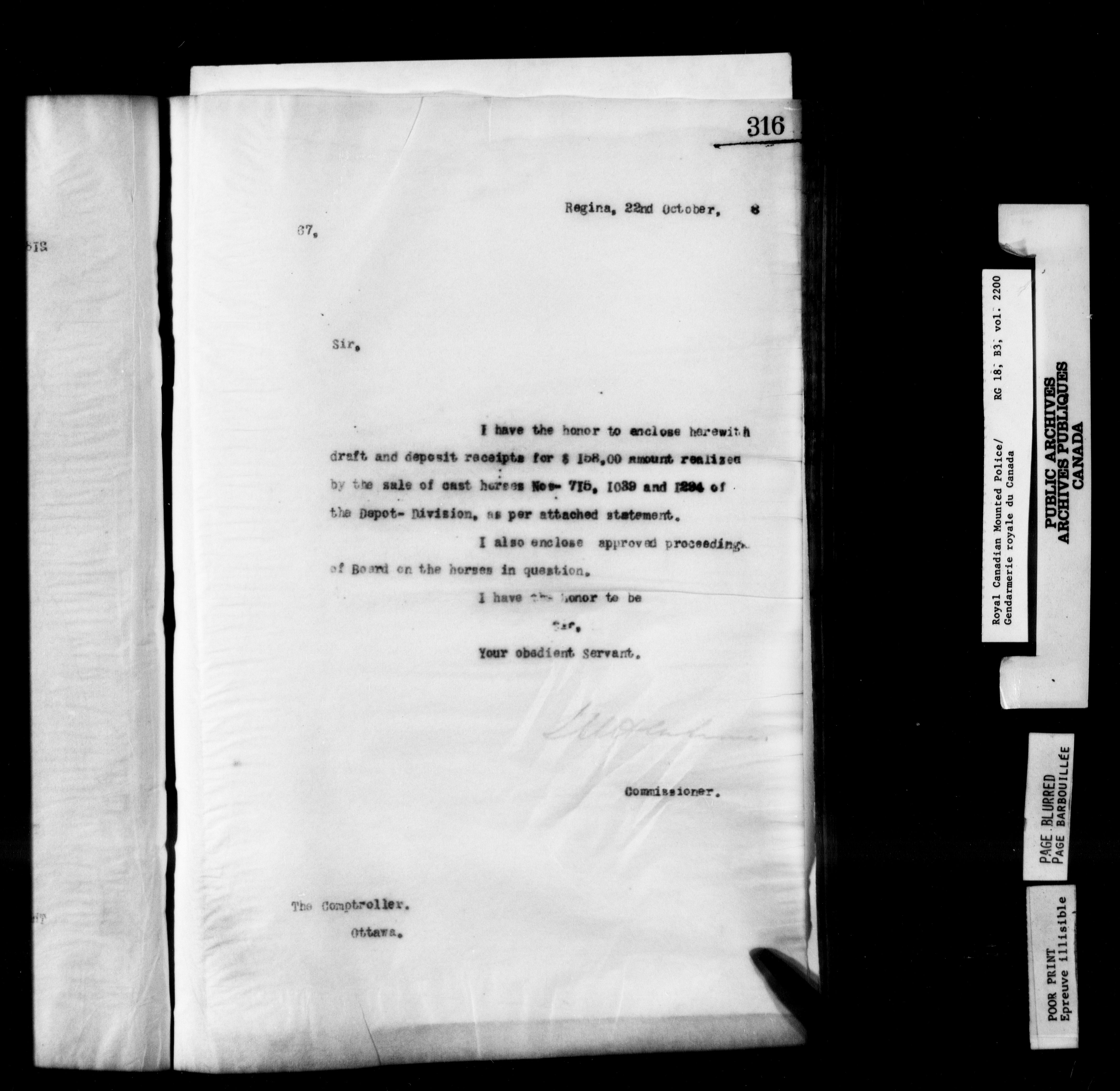 Royal Canadian Mounted Police : Letterbooks to the Comptroller (1881-1906) : T-6281