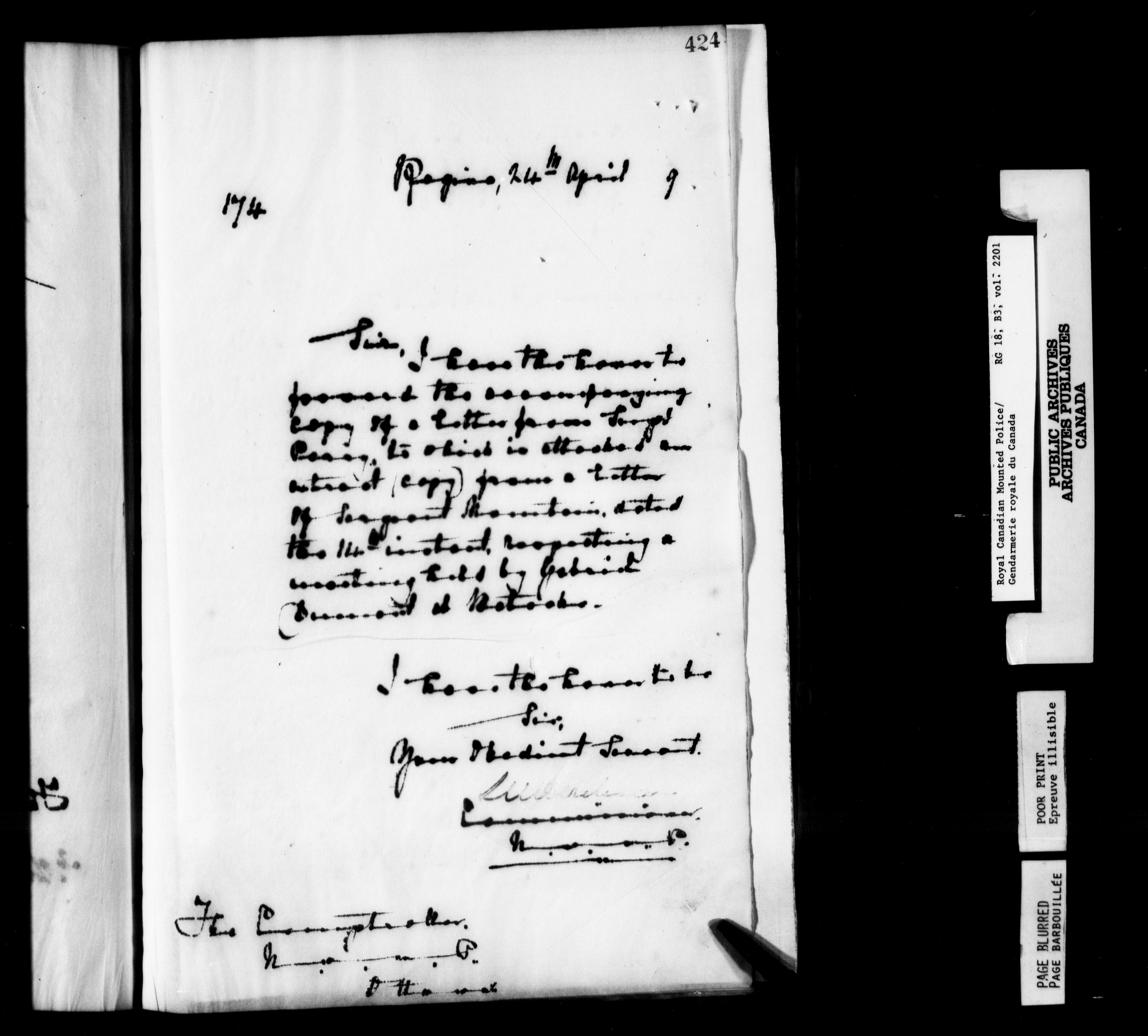 Royal Canadian Mounted Police : Letterbooks to the Comptroller (1881-1906) : T-6282