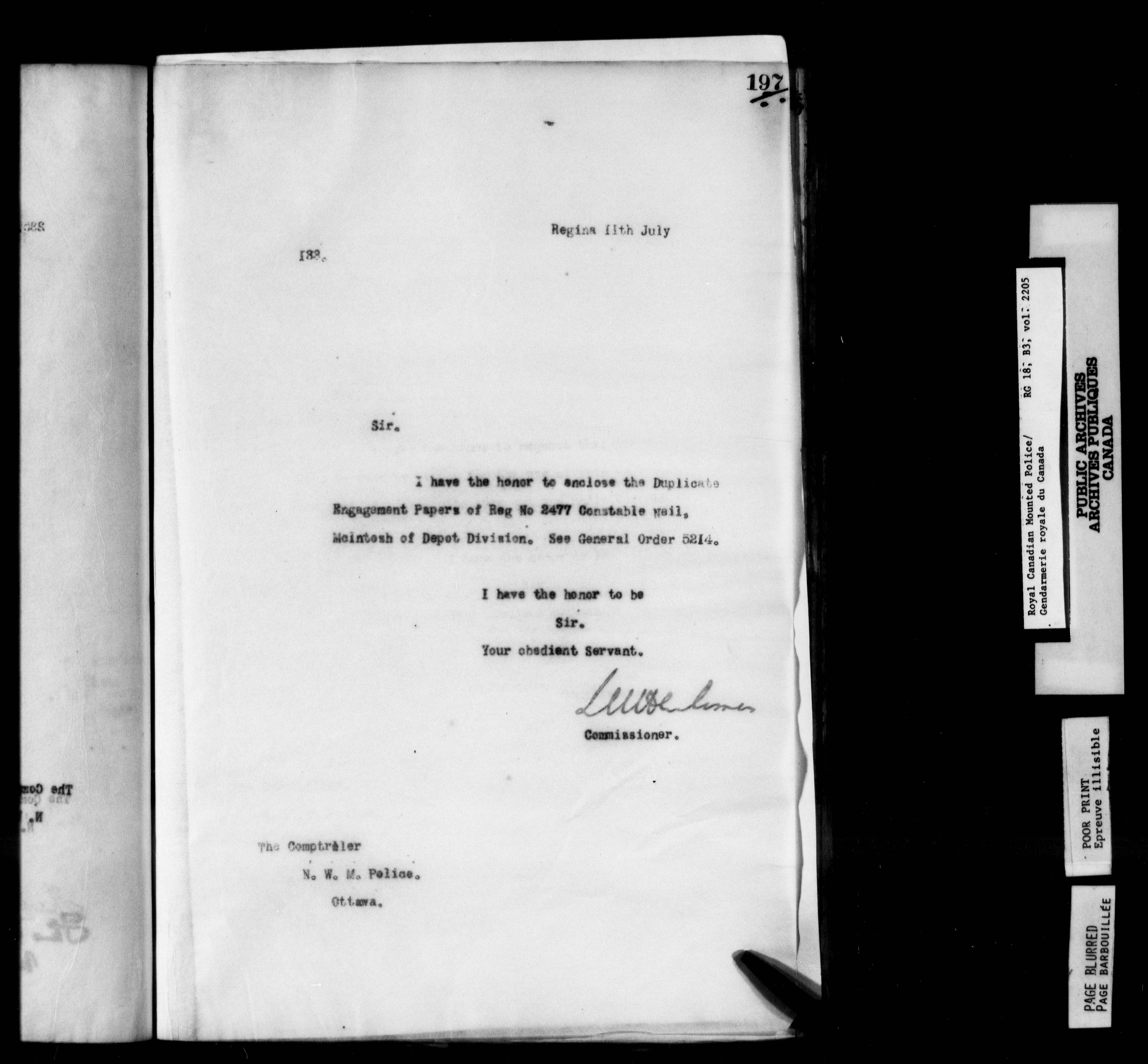 Royal Canadian Mounted Police : Letterbooks to the Comptroller (1881-1906) : T-6284