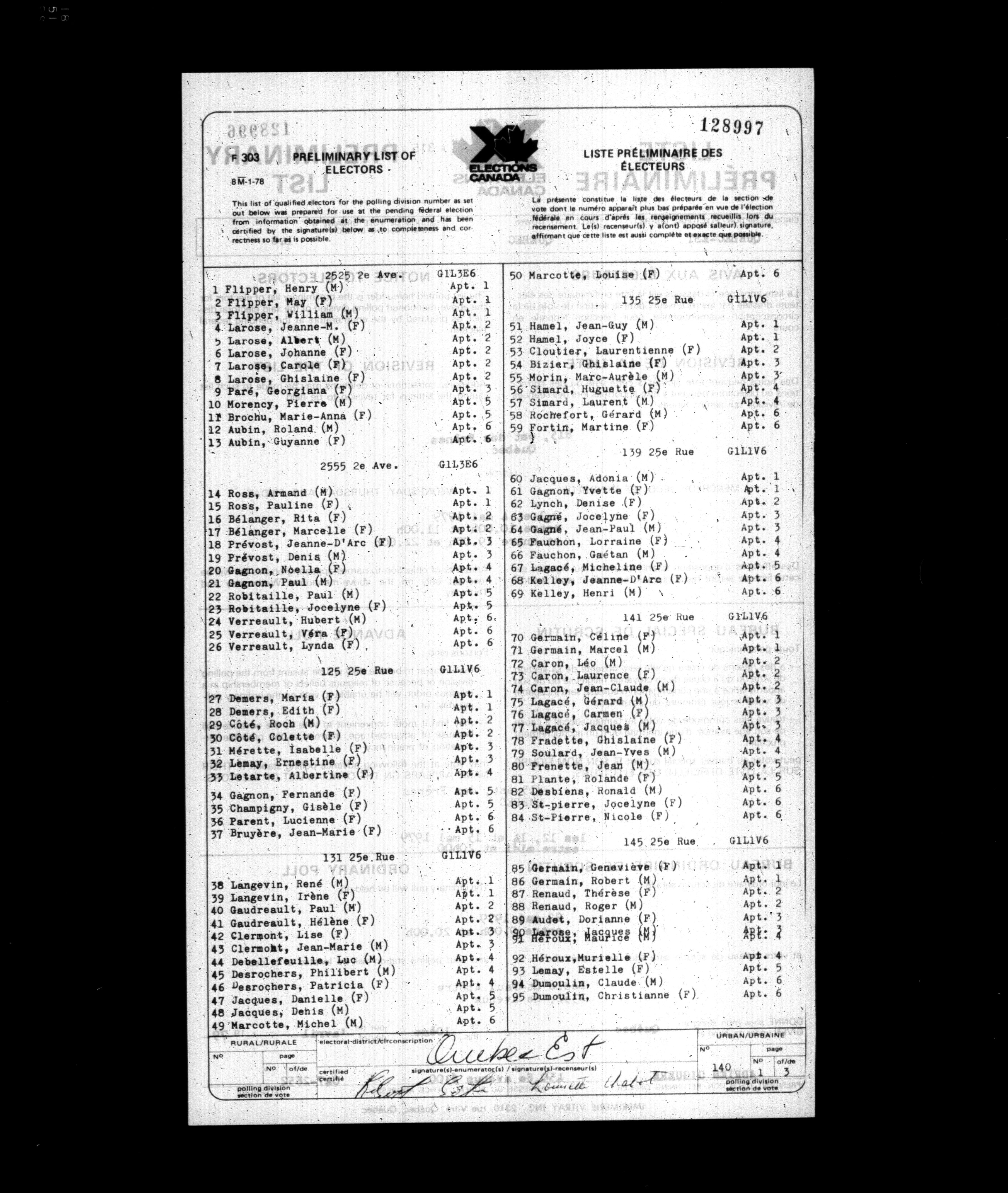 Voters' lists Québec, 1979 - 629