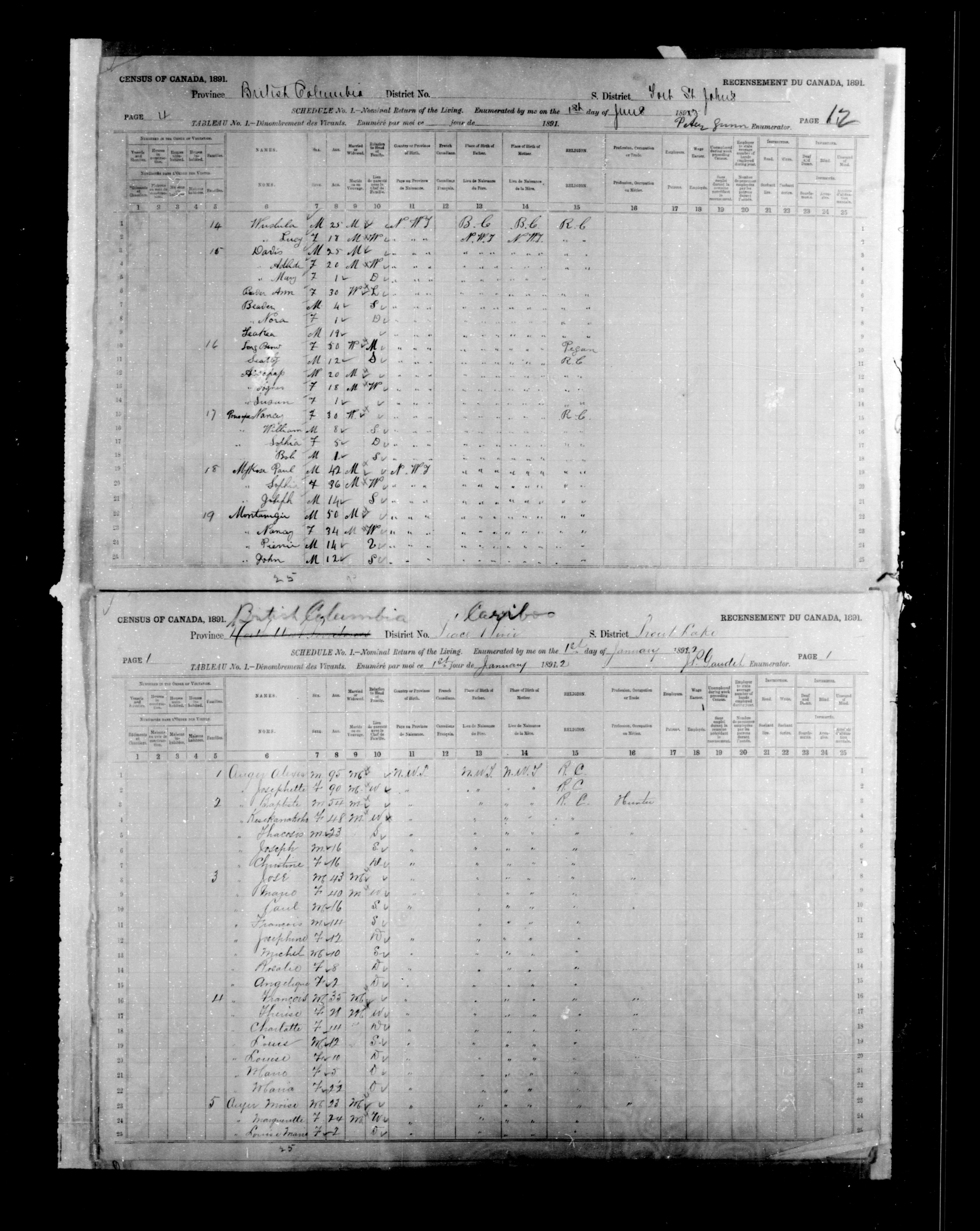 1891 Census|Census of Canada, 1891|Déclarations de recensement du Canada de 1891