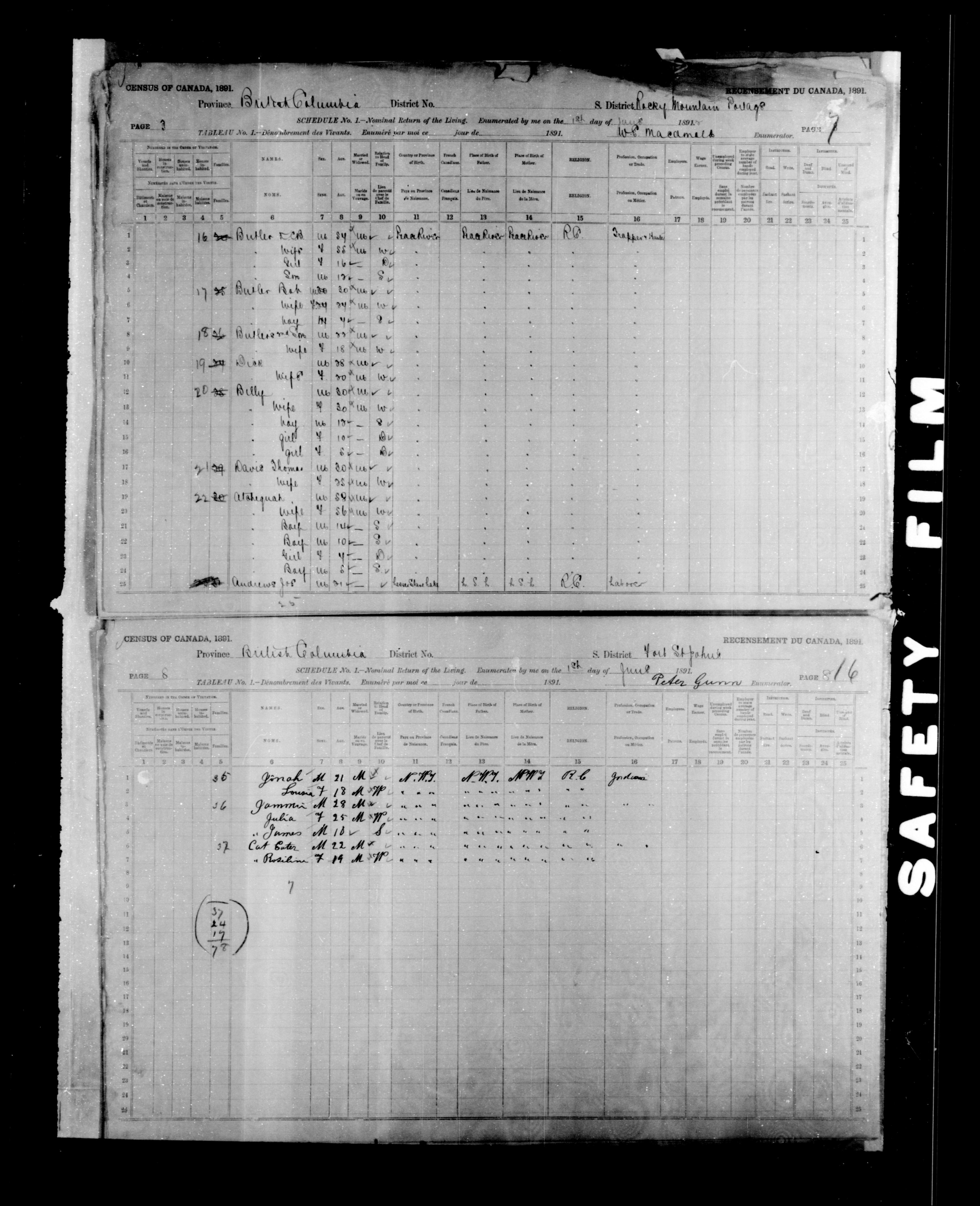 1891 Census|Census of Canada, 1891|Déclarations de recensement du Canada de 1891