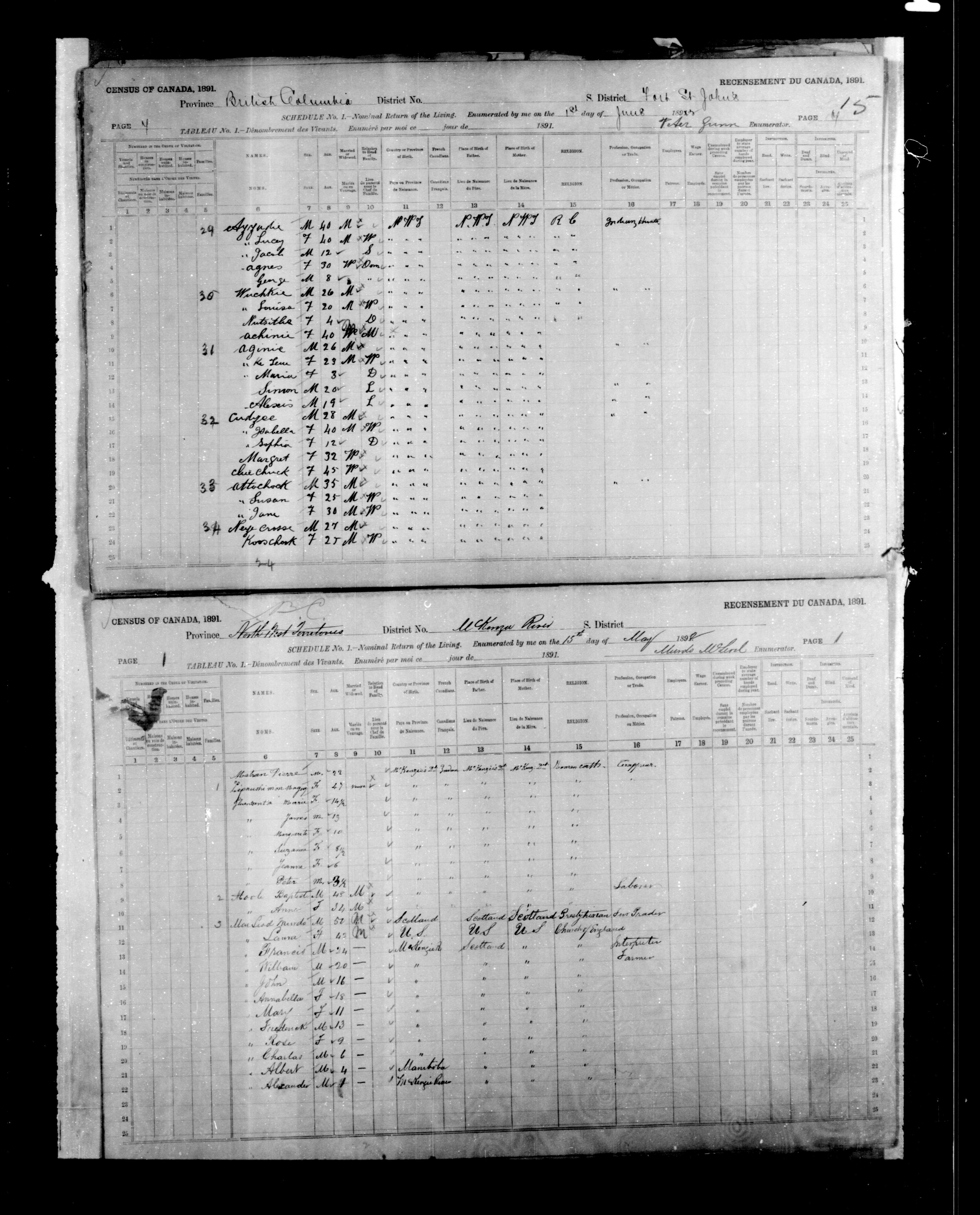 1891 Census|Census of Canada, 1891|Déclarations de recensement du Canada de 1891