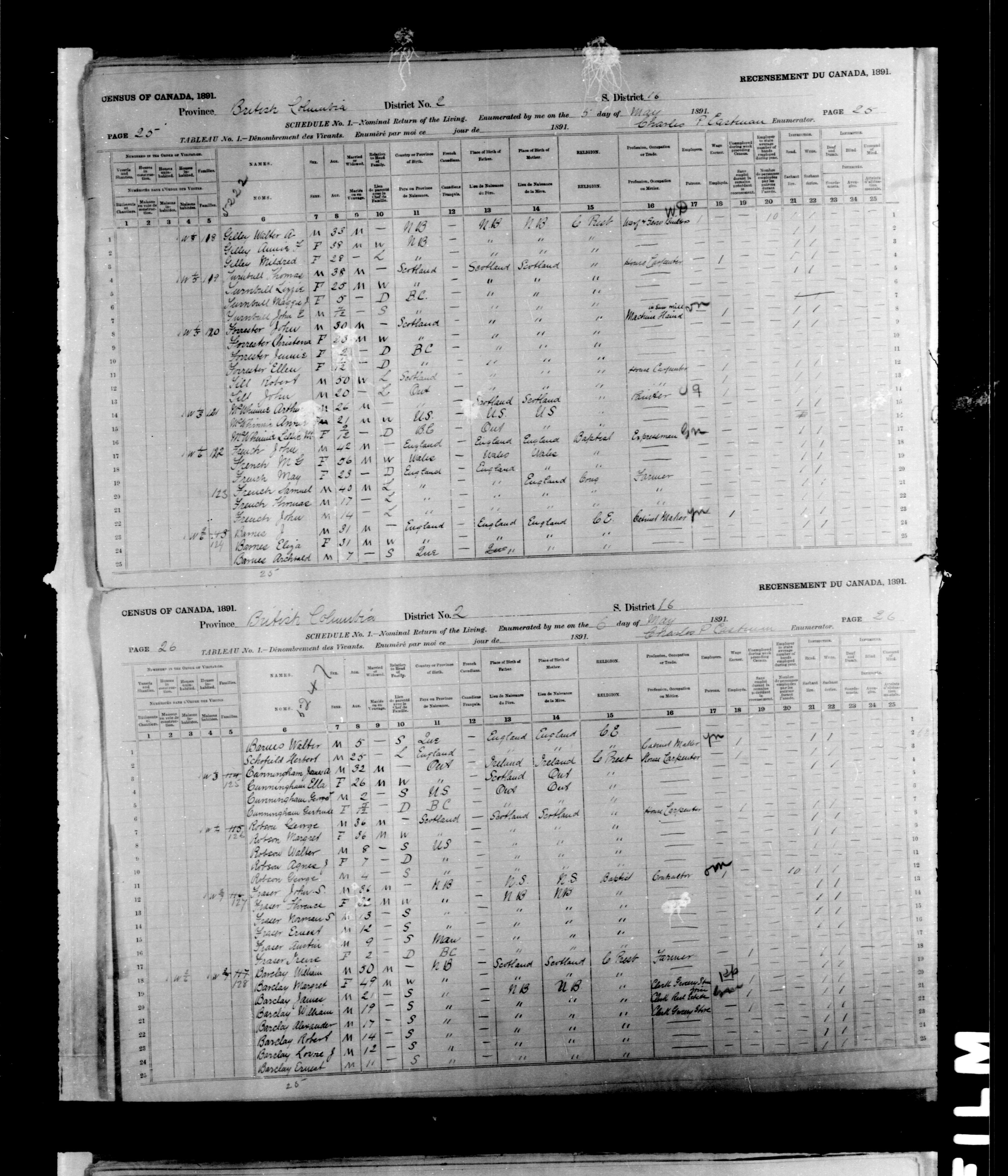 1891 Census|Census of Canada, 1891|Déclarations de recensement du Canada de 1891