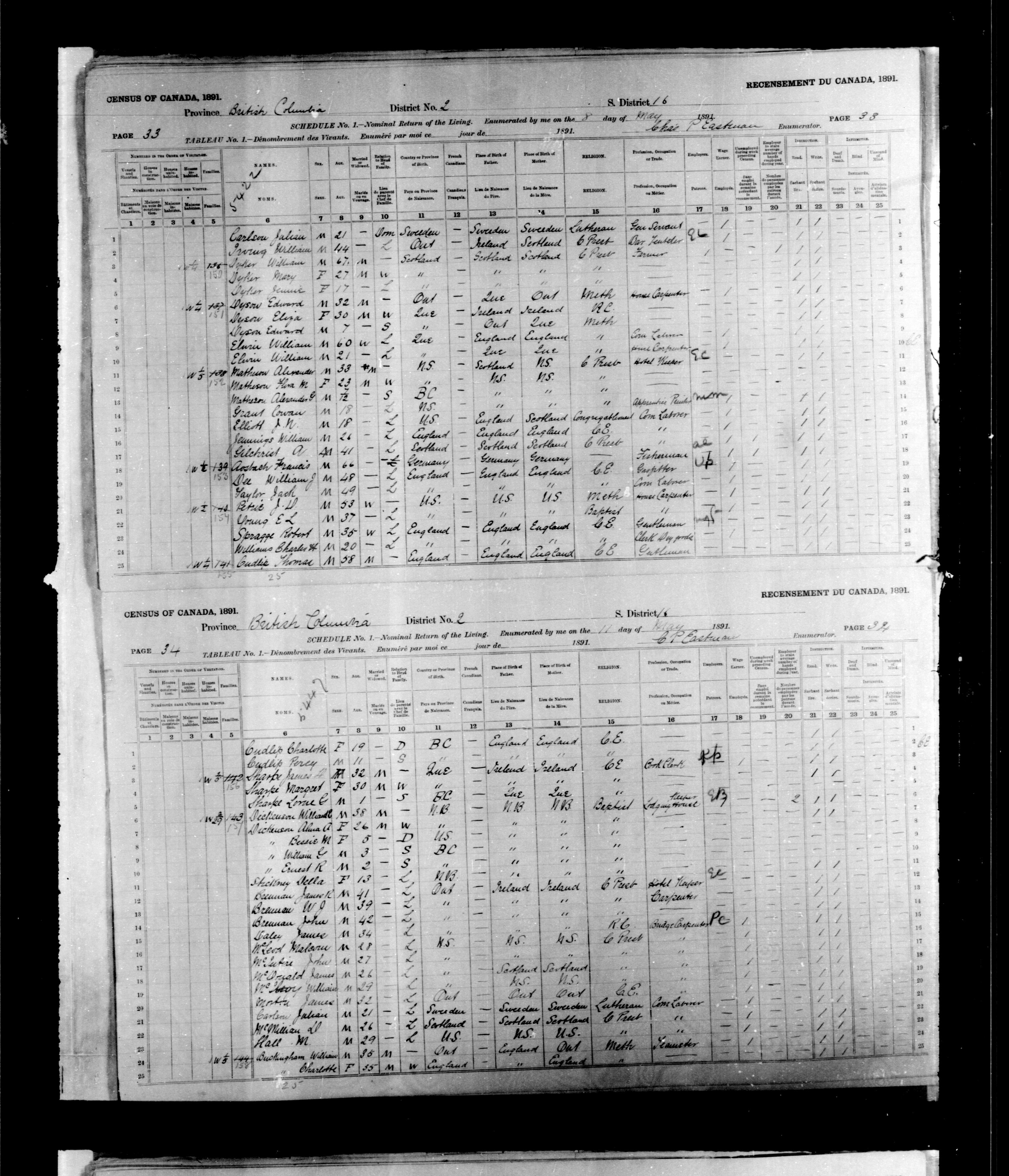 1891 Census|Census of Canada, 1891|Déclarations de recensement du Canada de 1891