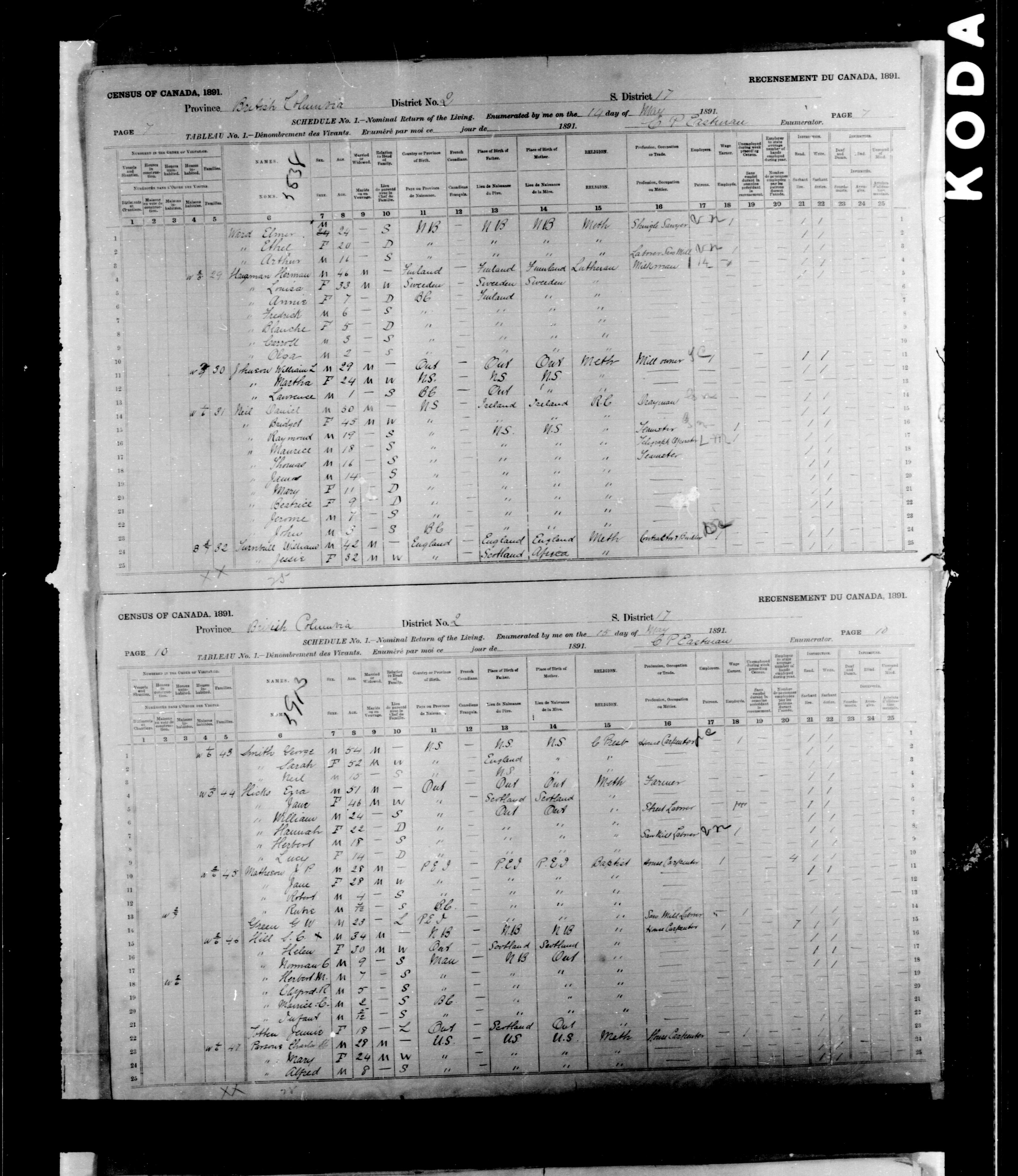 1891 Census|Census of Canada, 1891|Déclarations de recensement du Canada de 1891