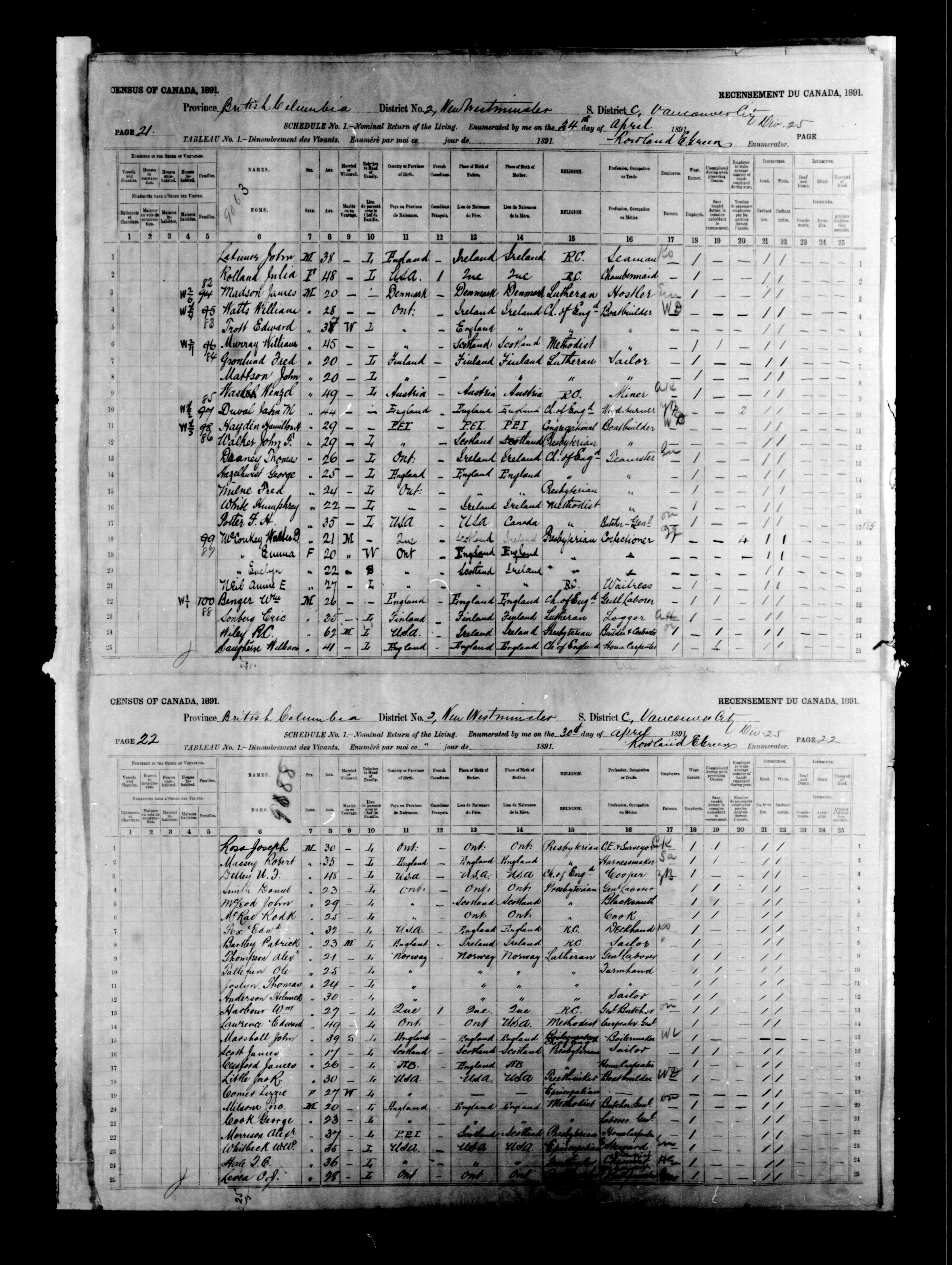 1891 Census|Census of Canada, 1891|Déclarations de recensement du Canada de 1891