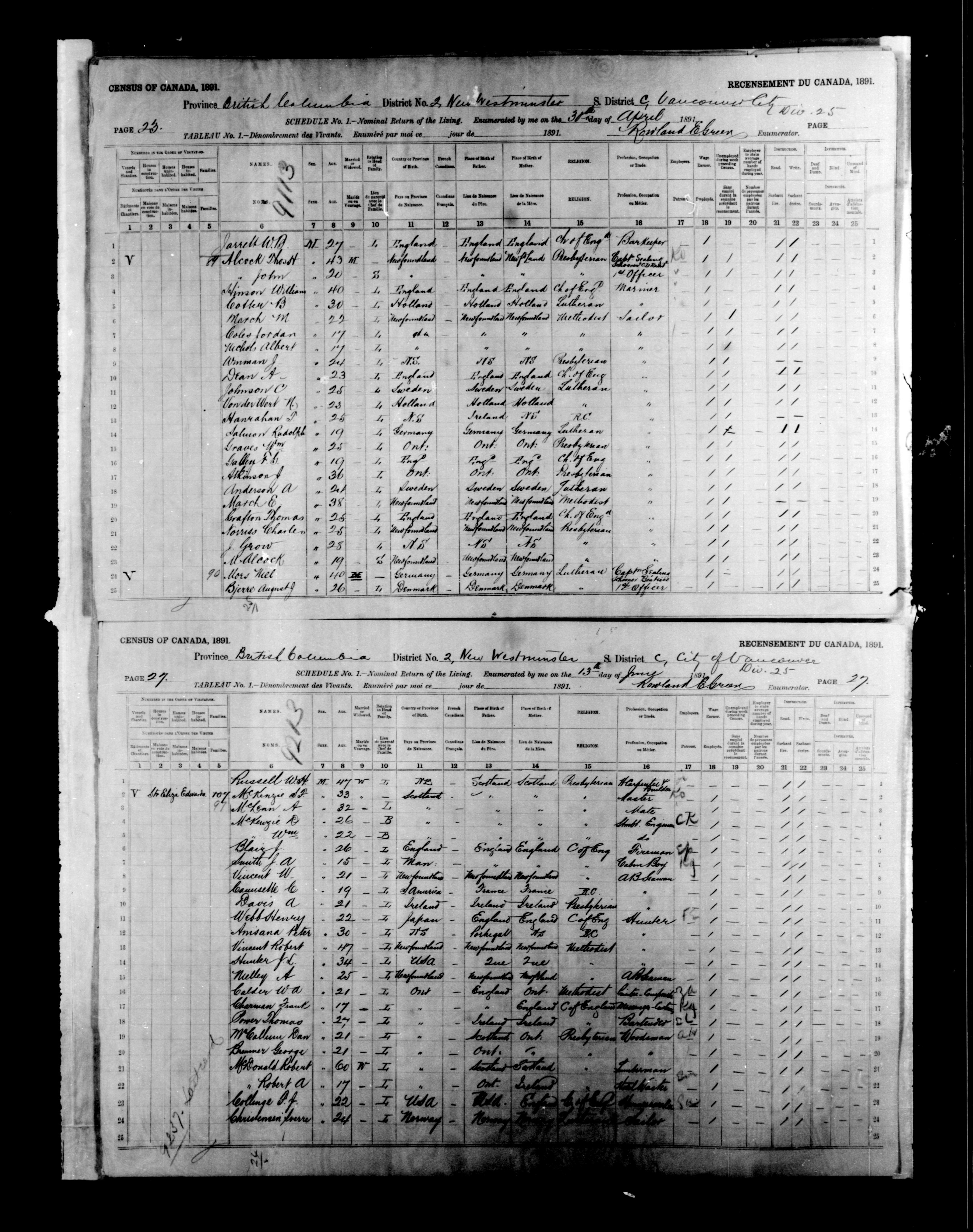 1891 Census|Census of Canada, 1891|Déclarations de recensement du Canada de 1891