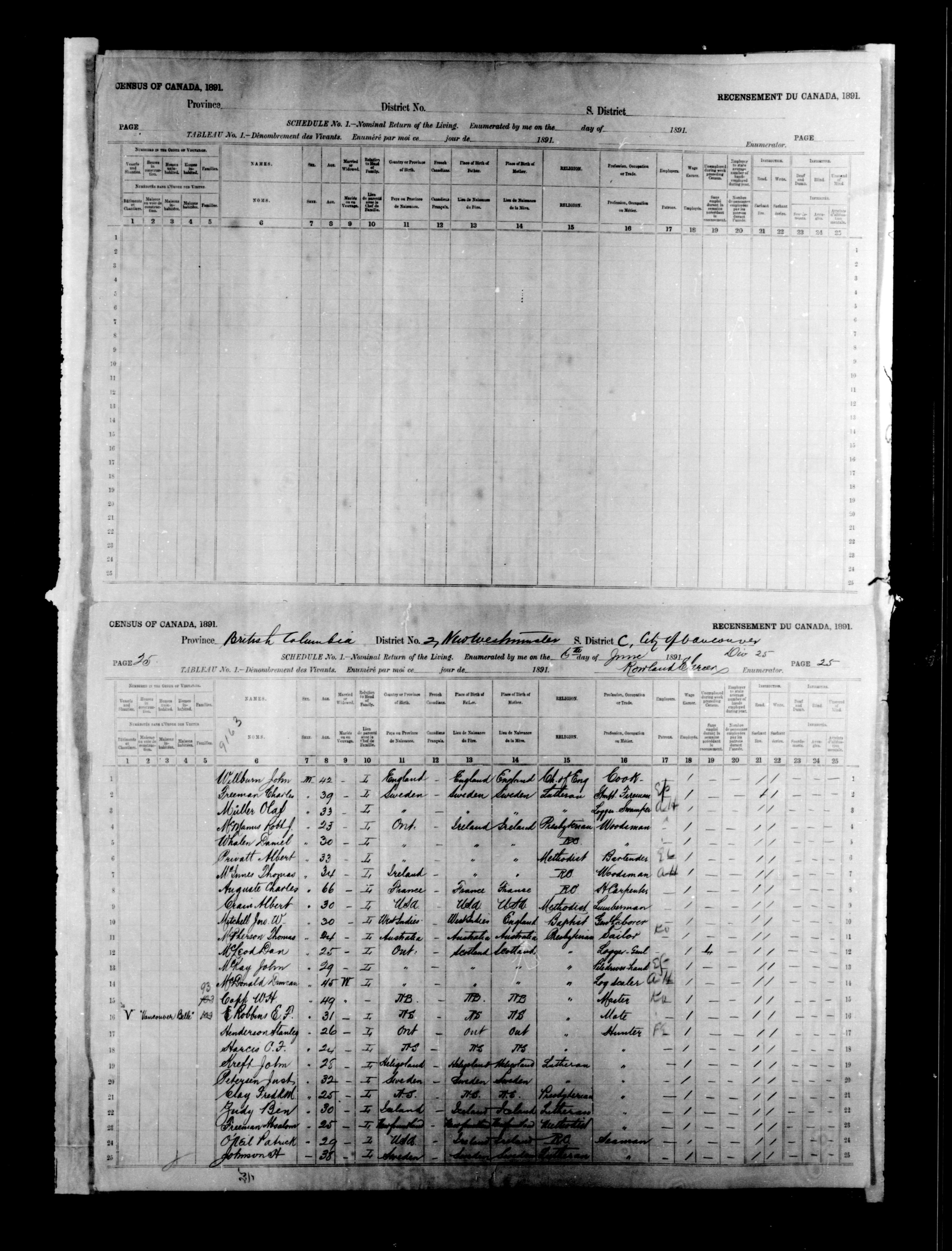 1891 Census|Census of Canada, 1891|Déclarations de recensement du Canada de 1891