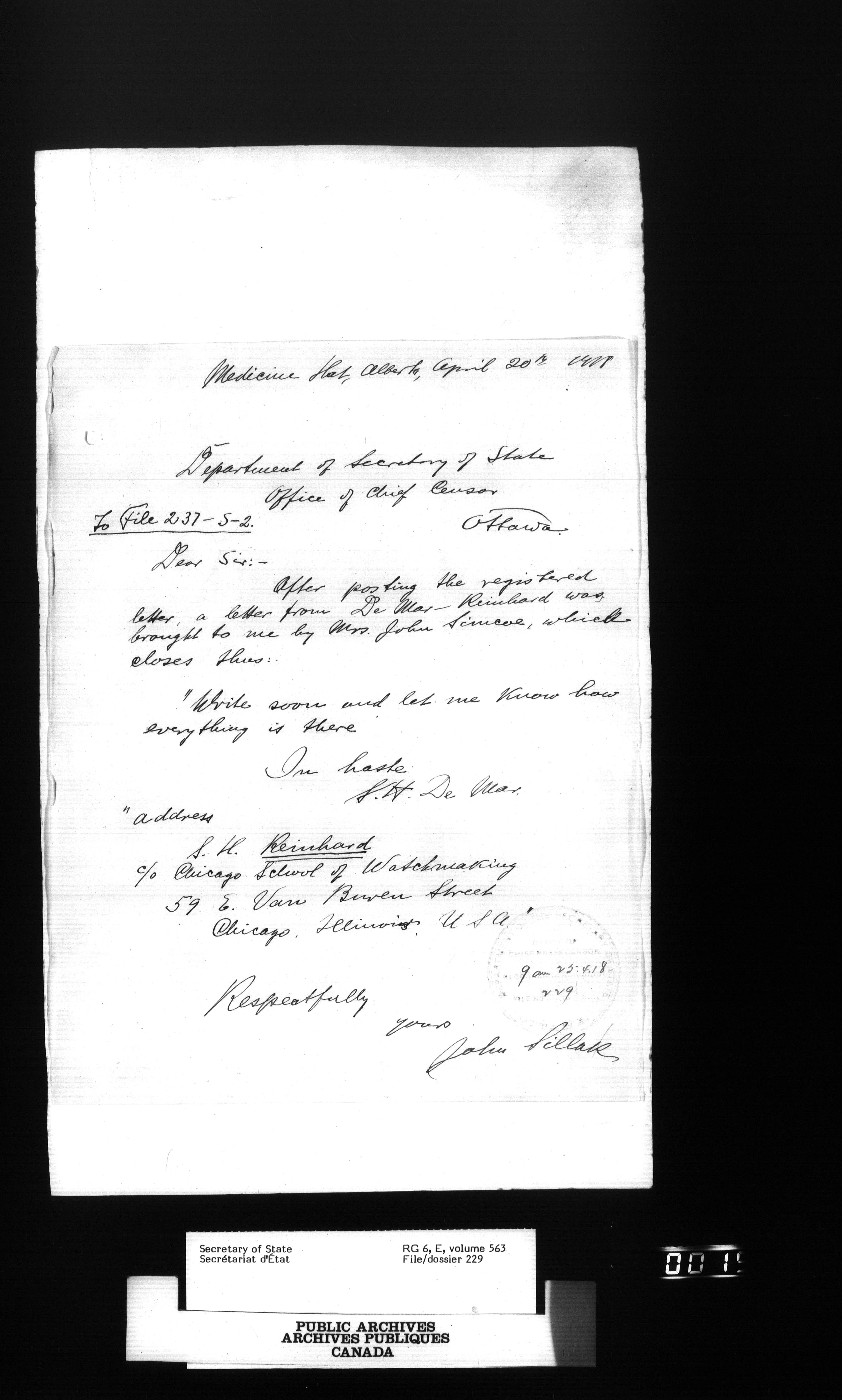 Secretary of State : Chief Press Censor, 1915-1920 - 63