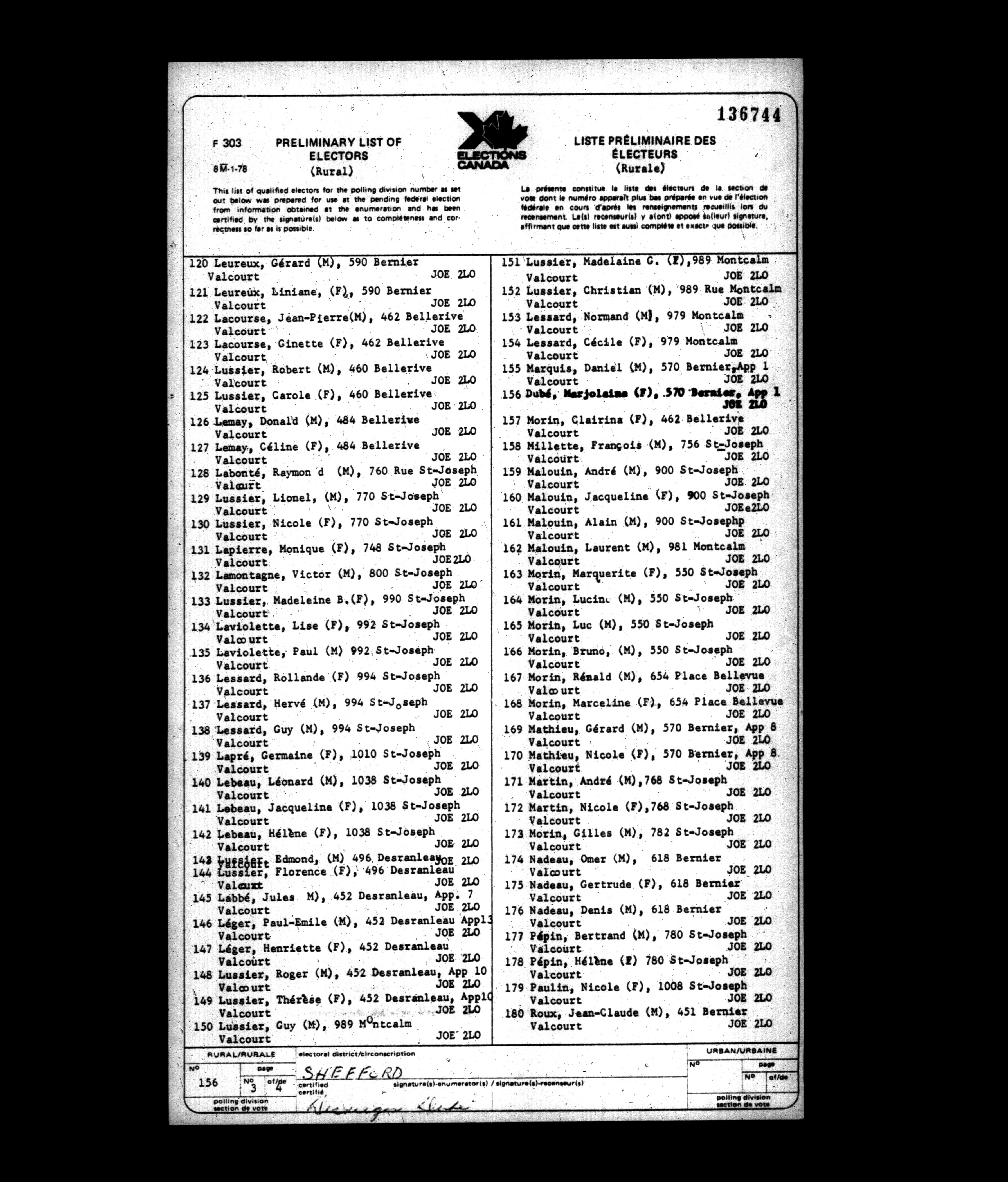 Voters' lists Québec, 1979 - 634