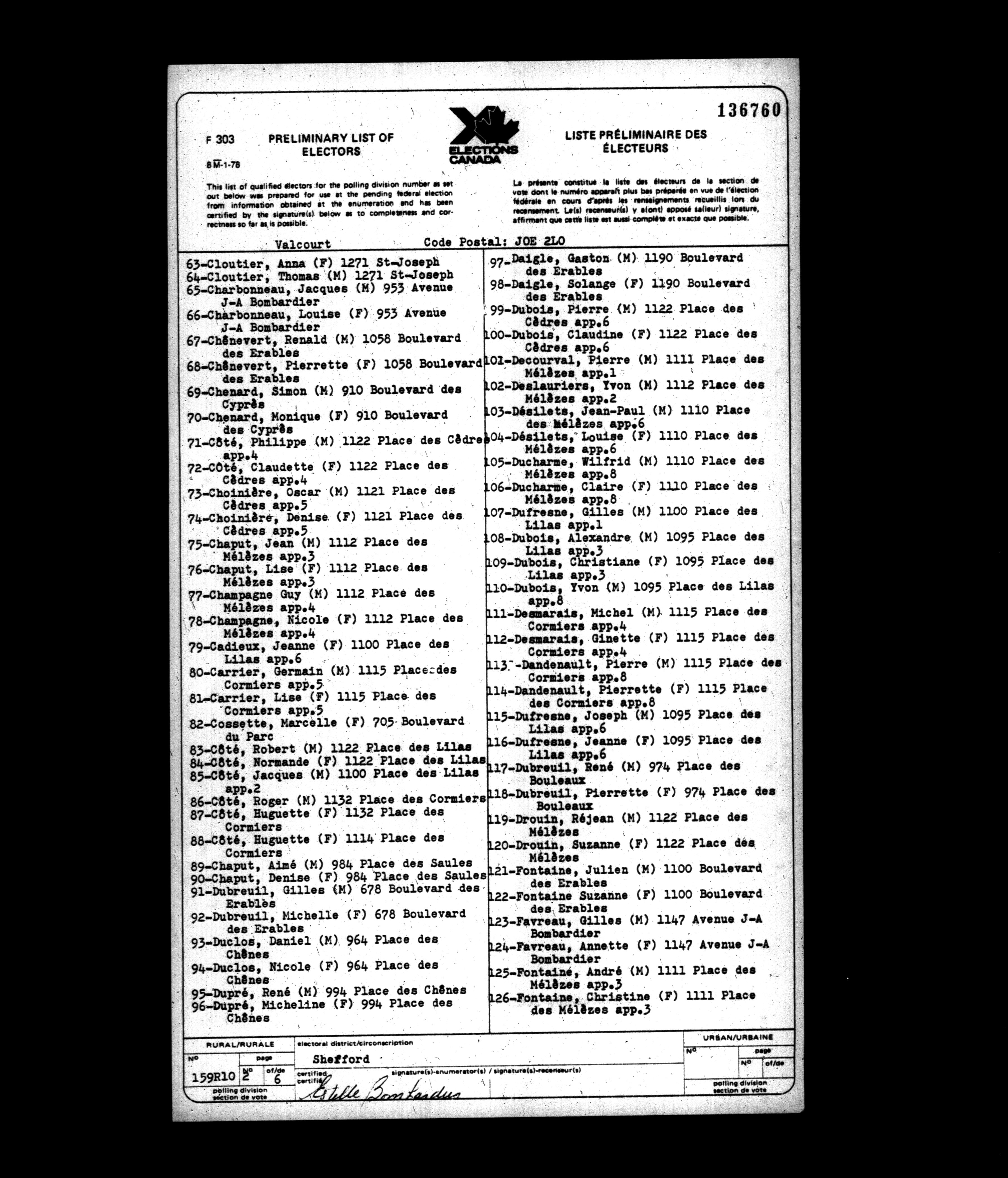 Voters' lists Québec, 1979 - 634