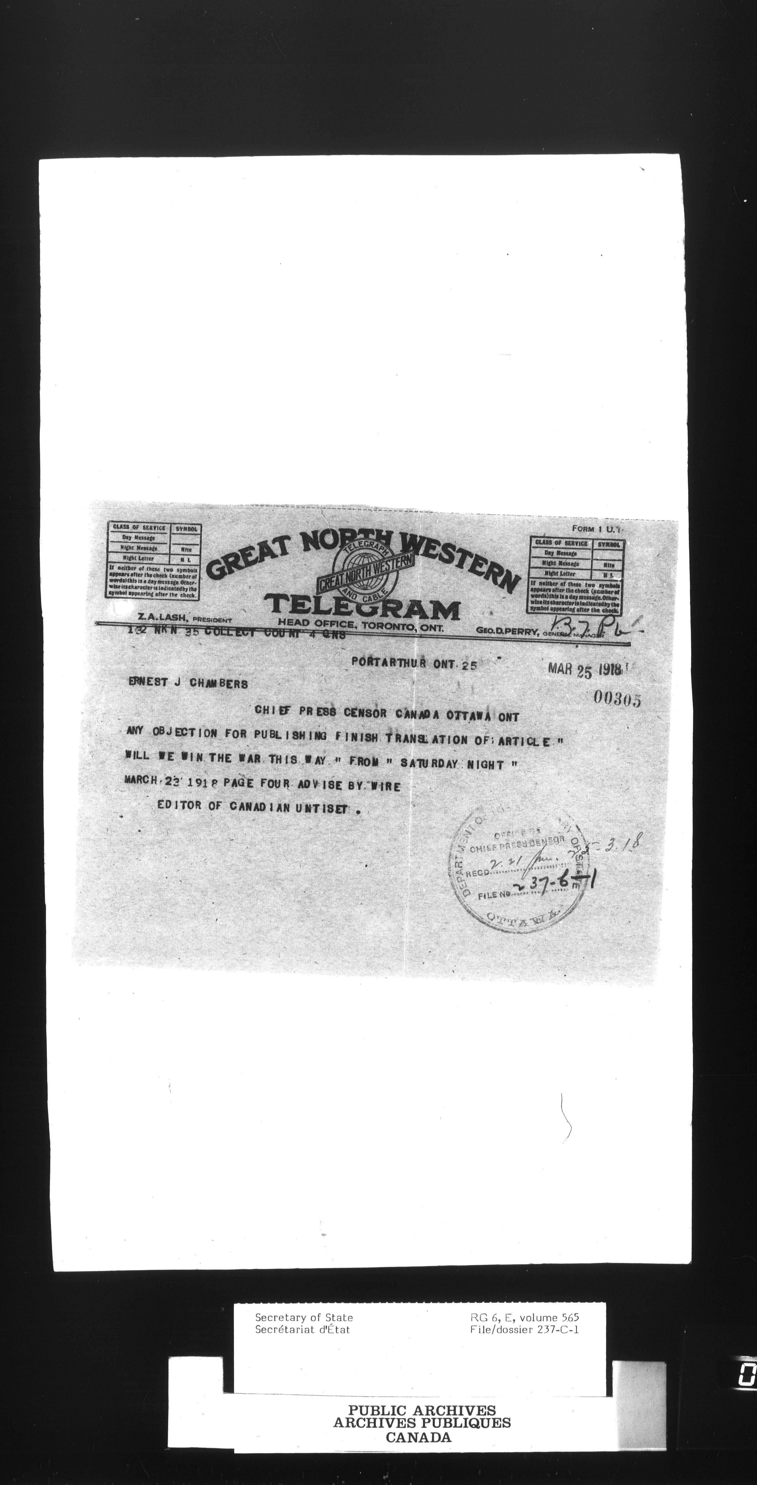 Secretary of State : Chief Press Censor, 1915-1920 - 64
