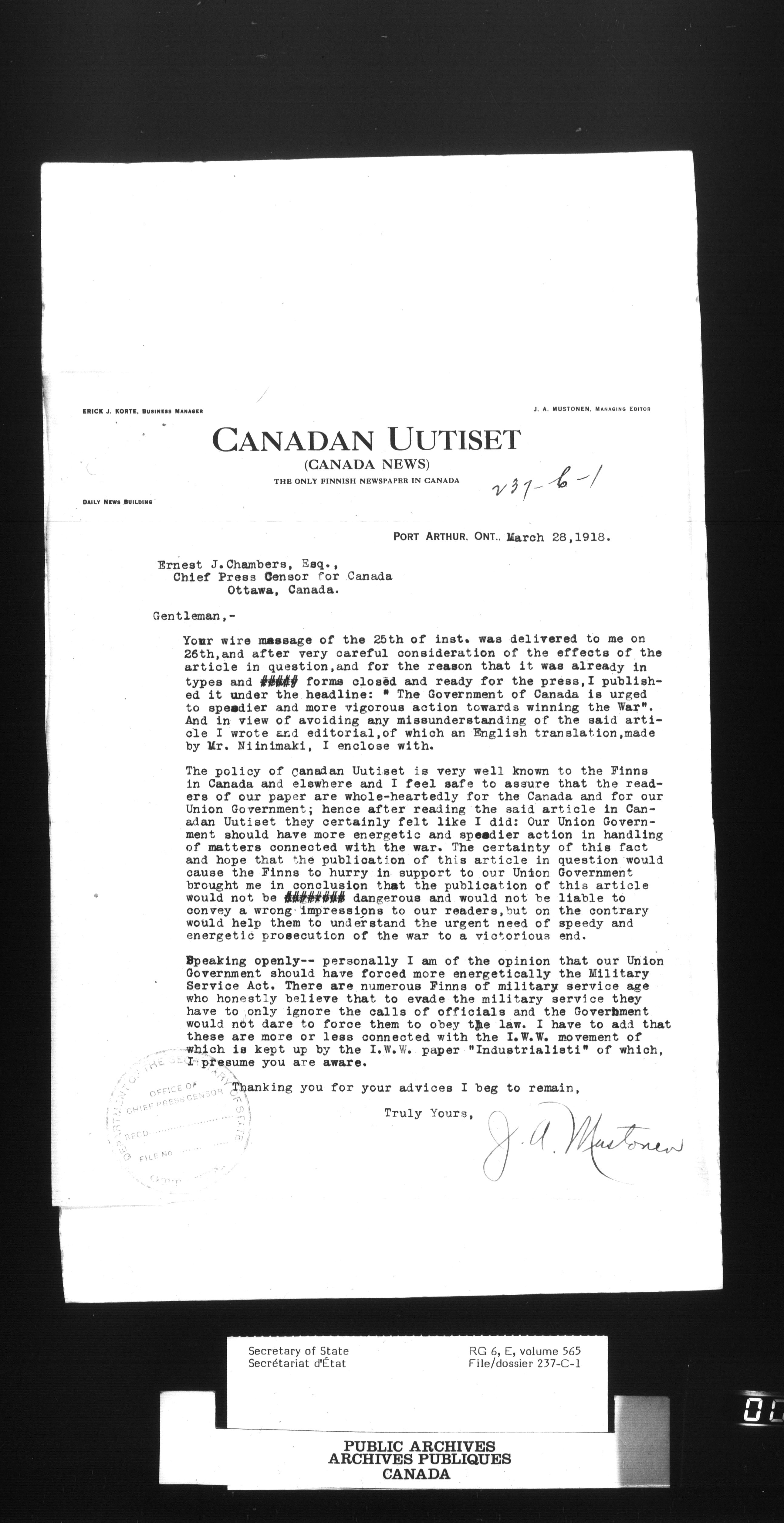 Secretary of State : Chief Press Censor, 1915-1920 - 64