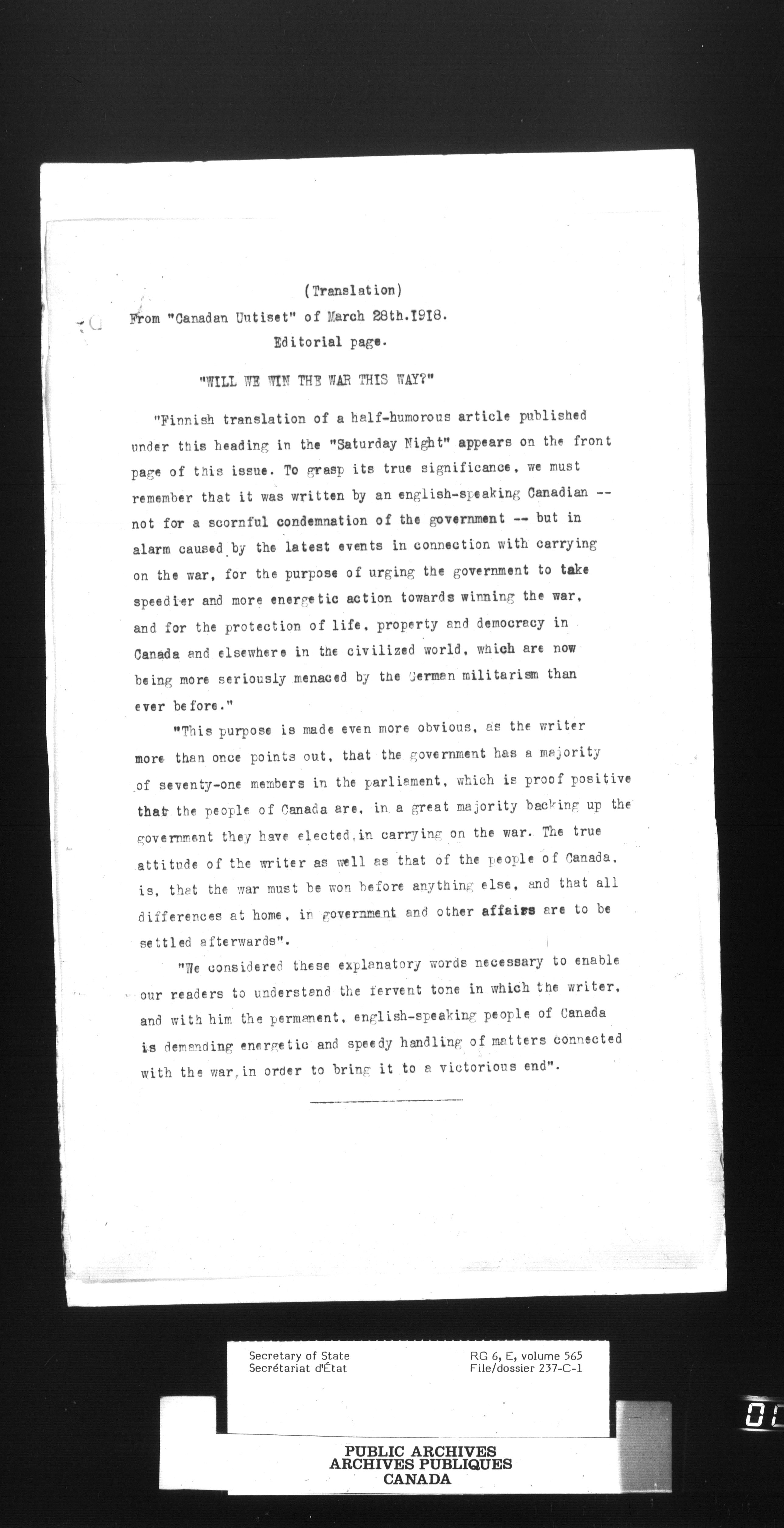 Secretary of State : Chief Press Censor, 1915-1920 - 64