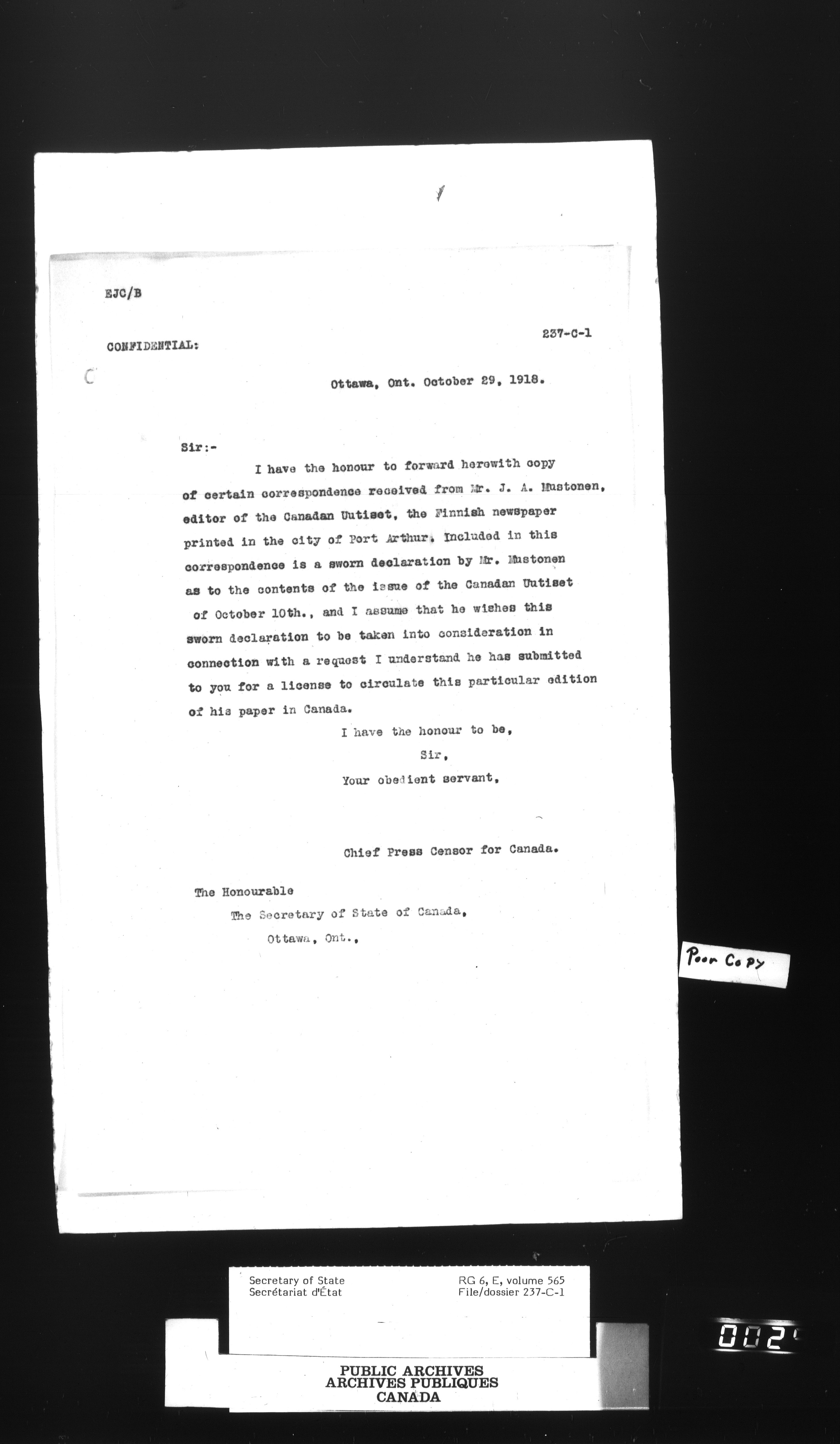 Secretary of State : Chief Press Censor, 1915-1920 - 64