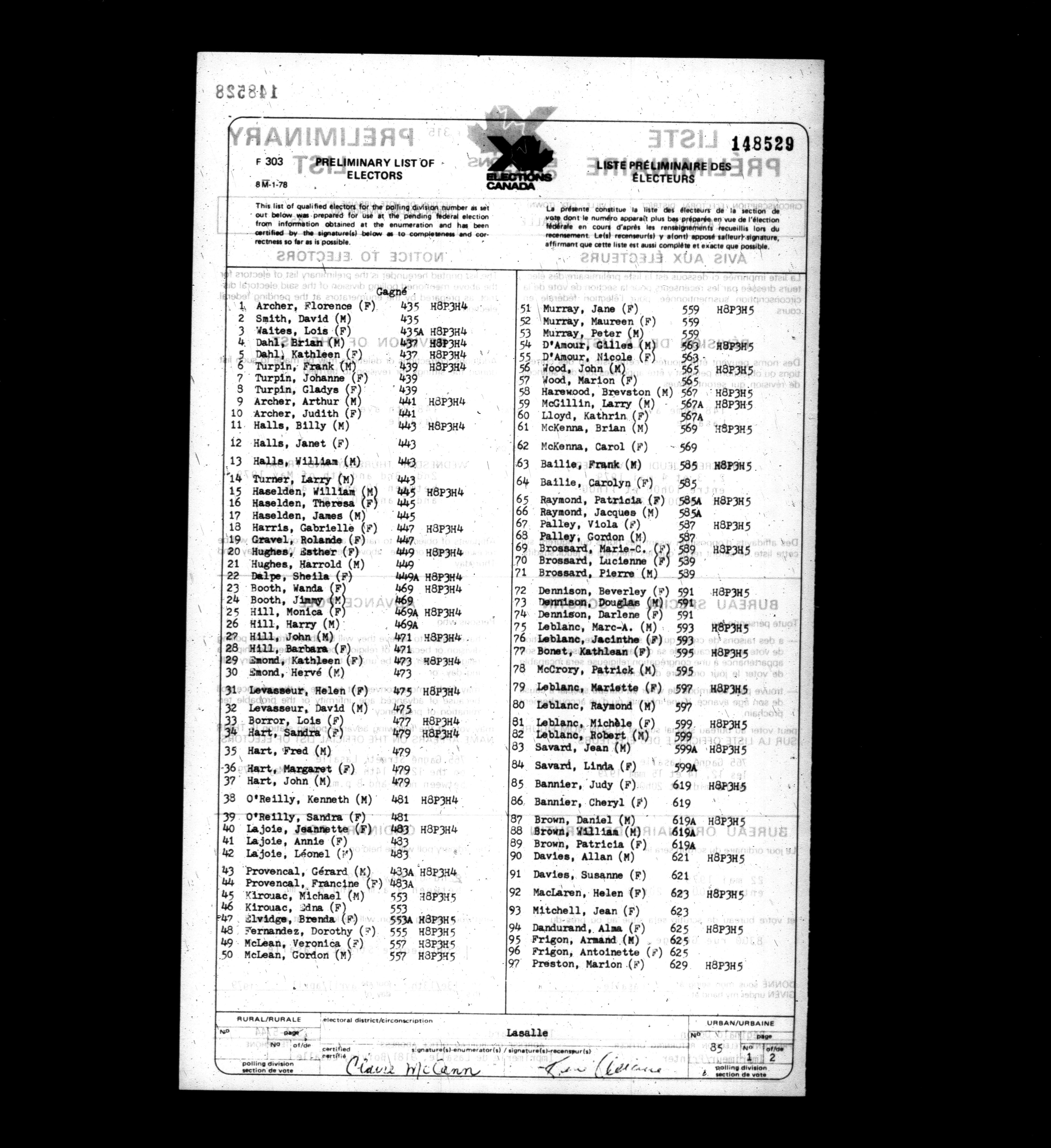 Voters' lists Québec, 1979 - 641
