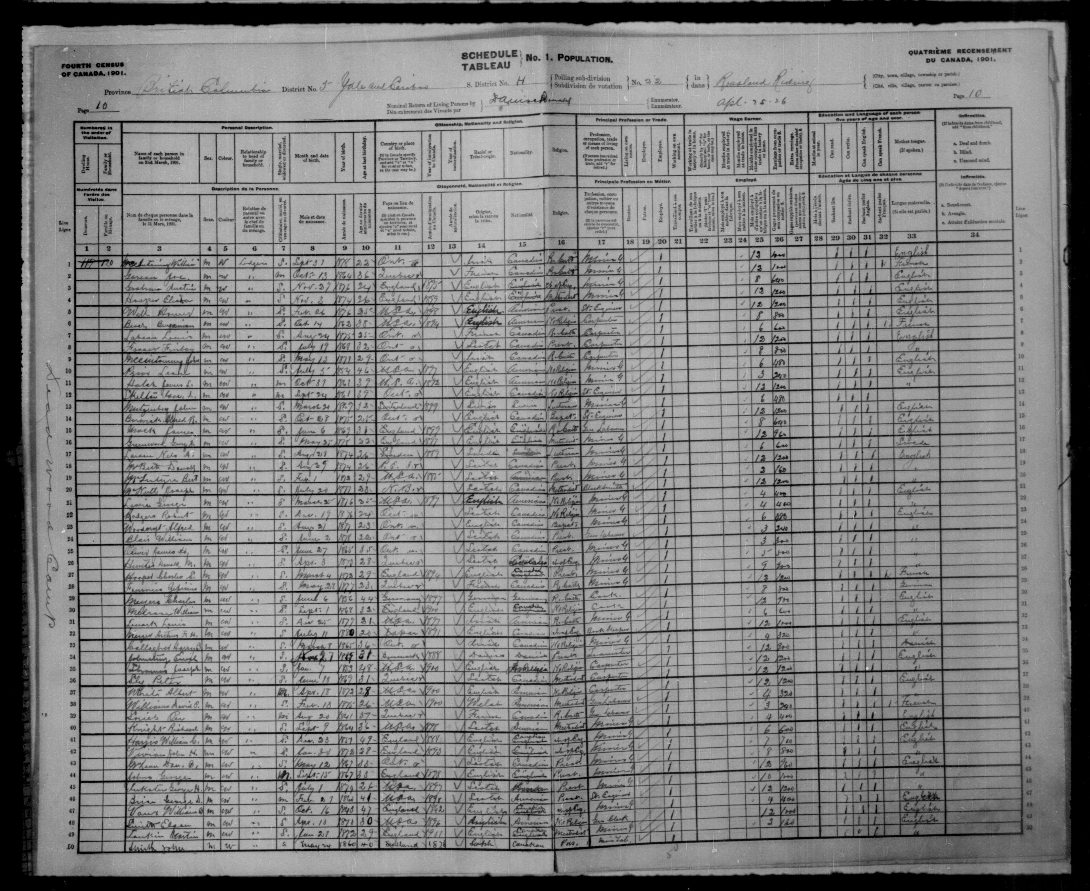 Included in this reel are the census returns for British Columbia.