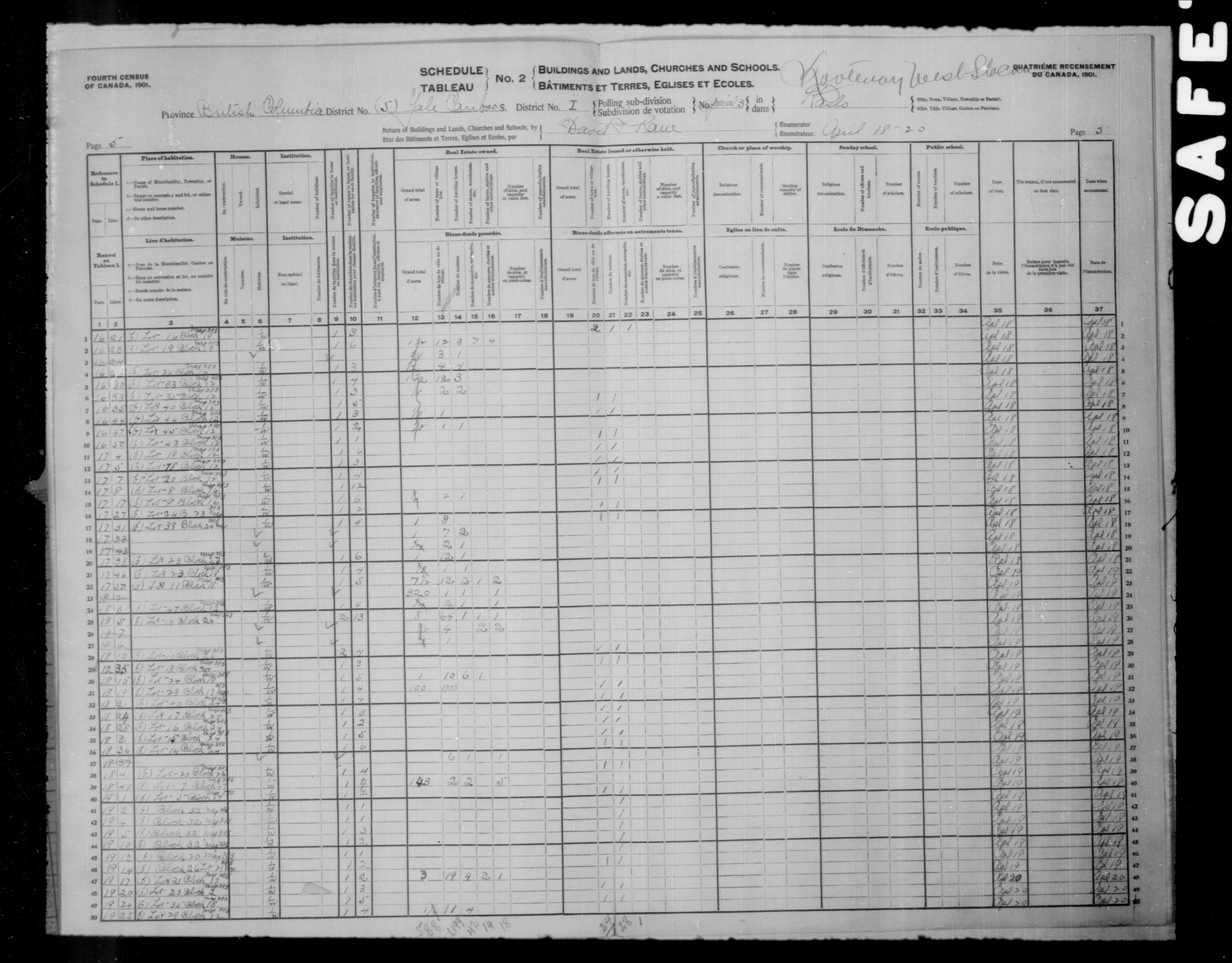 Census returns for the 1901 Canadian census - T-6437