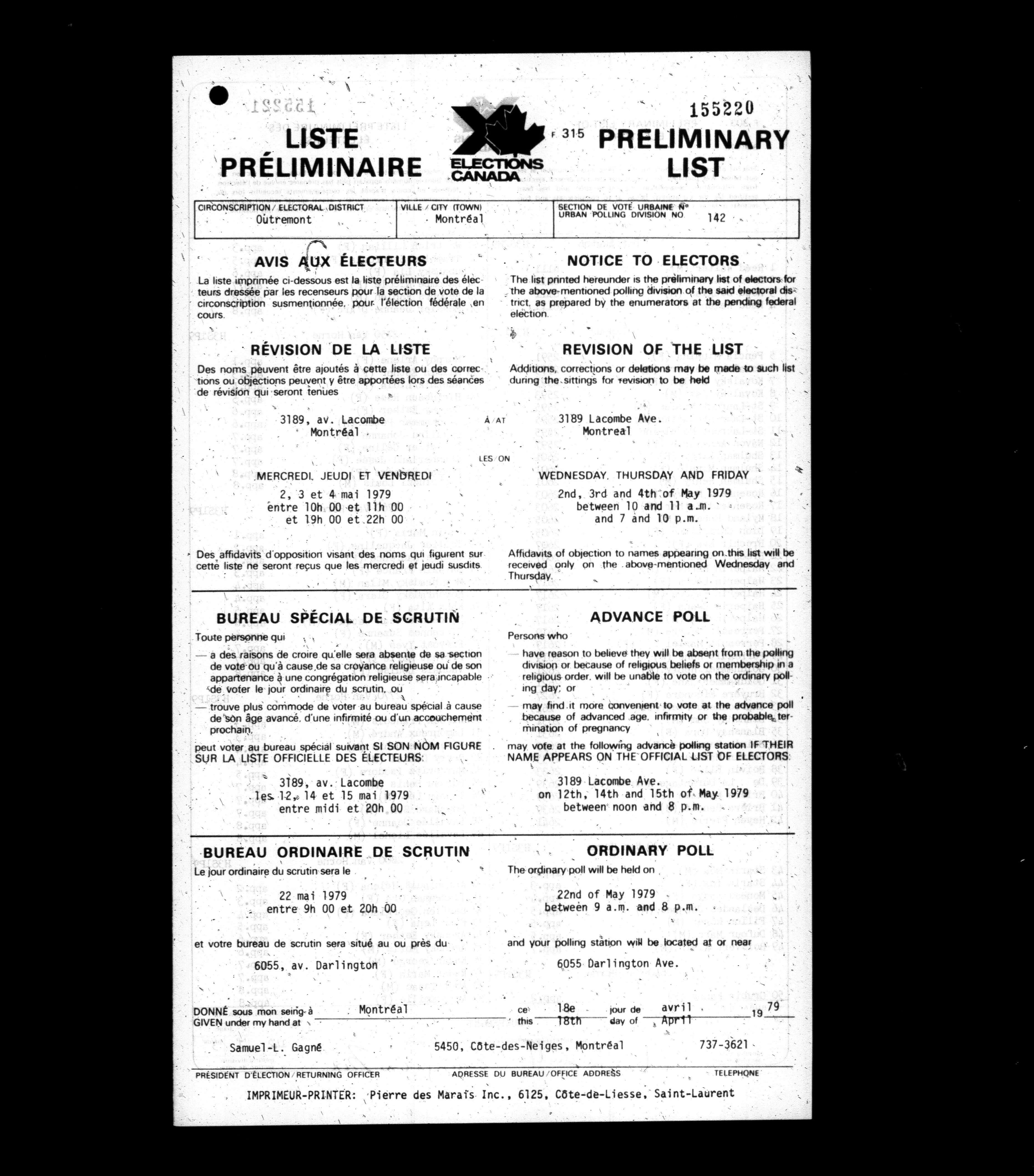 Office of the Chief Electoral Officer : Preliminary List of Electors : T-645
