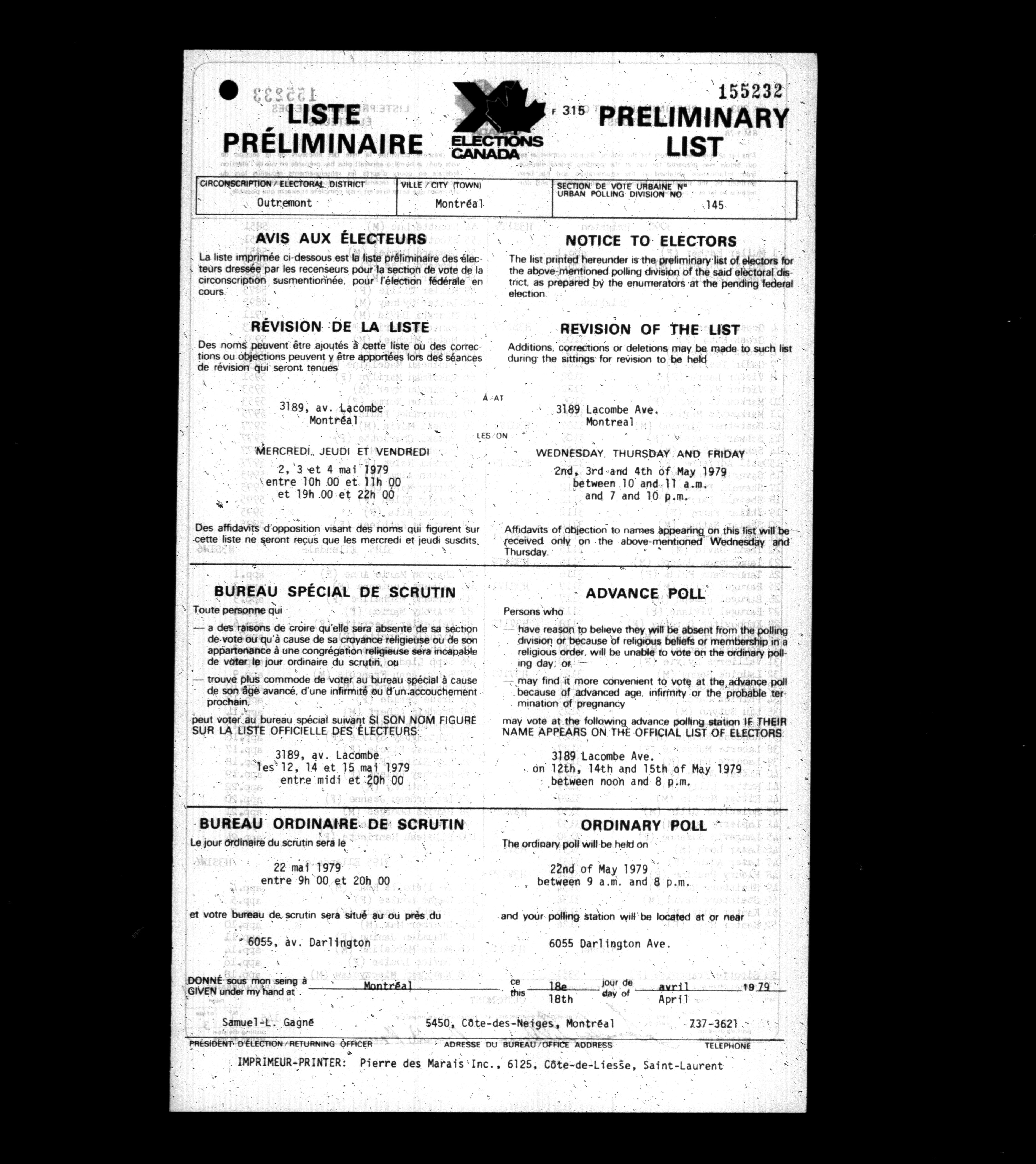 Office of the Chief Electoral Officer : Preliminary List of Electors : T-645