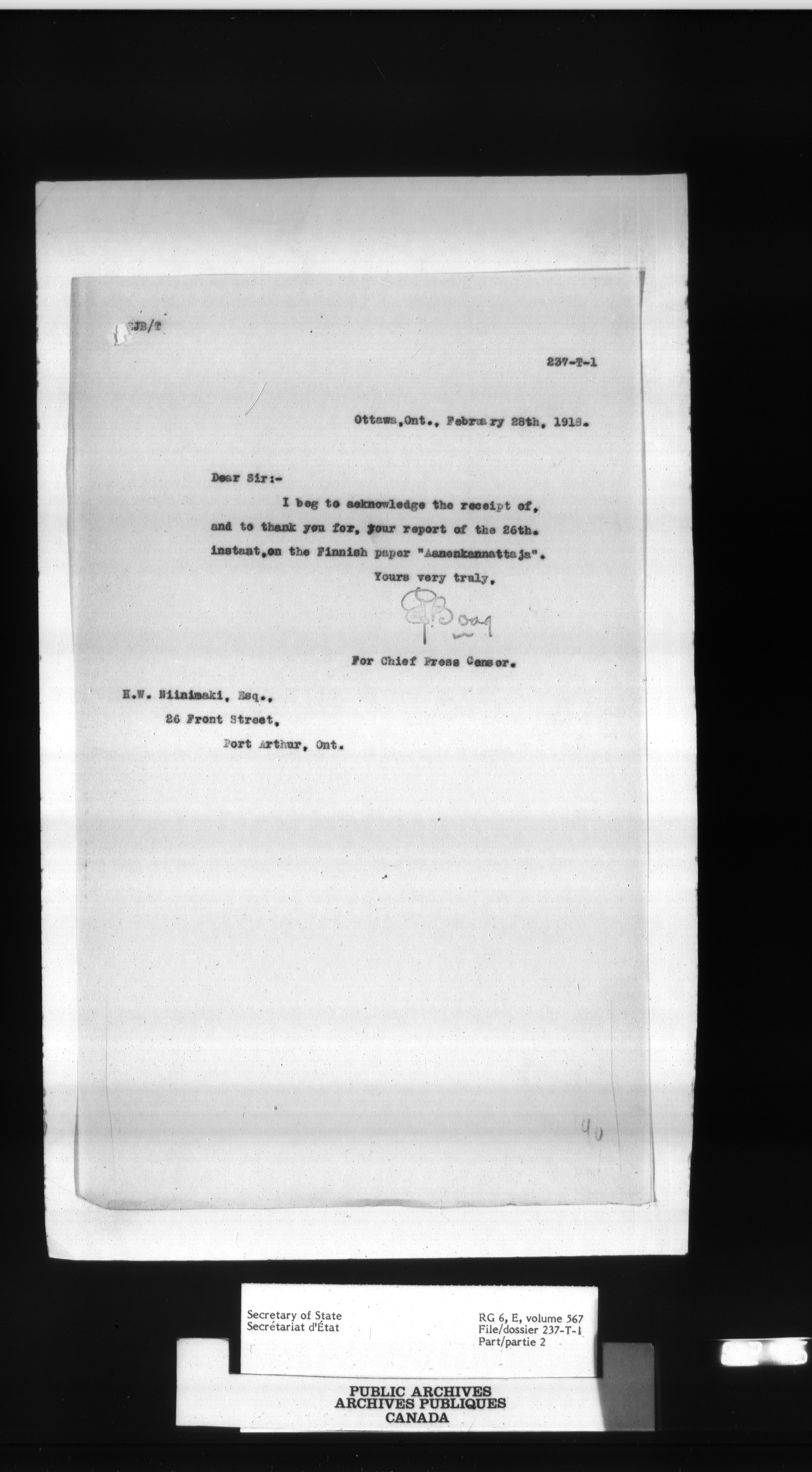 Secretary of State : Chief Press Censor, 1915-1920 - 65