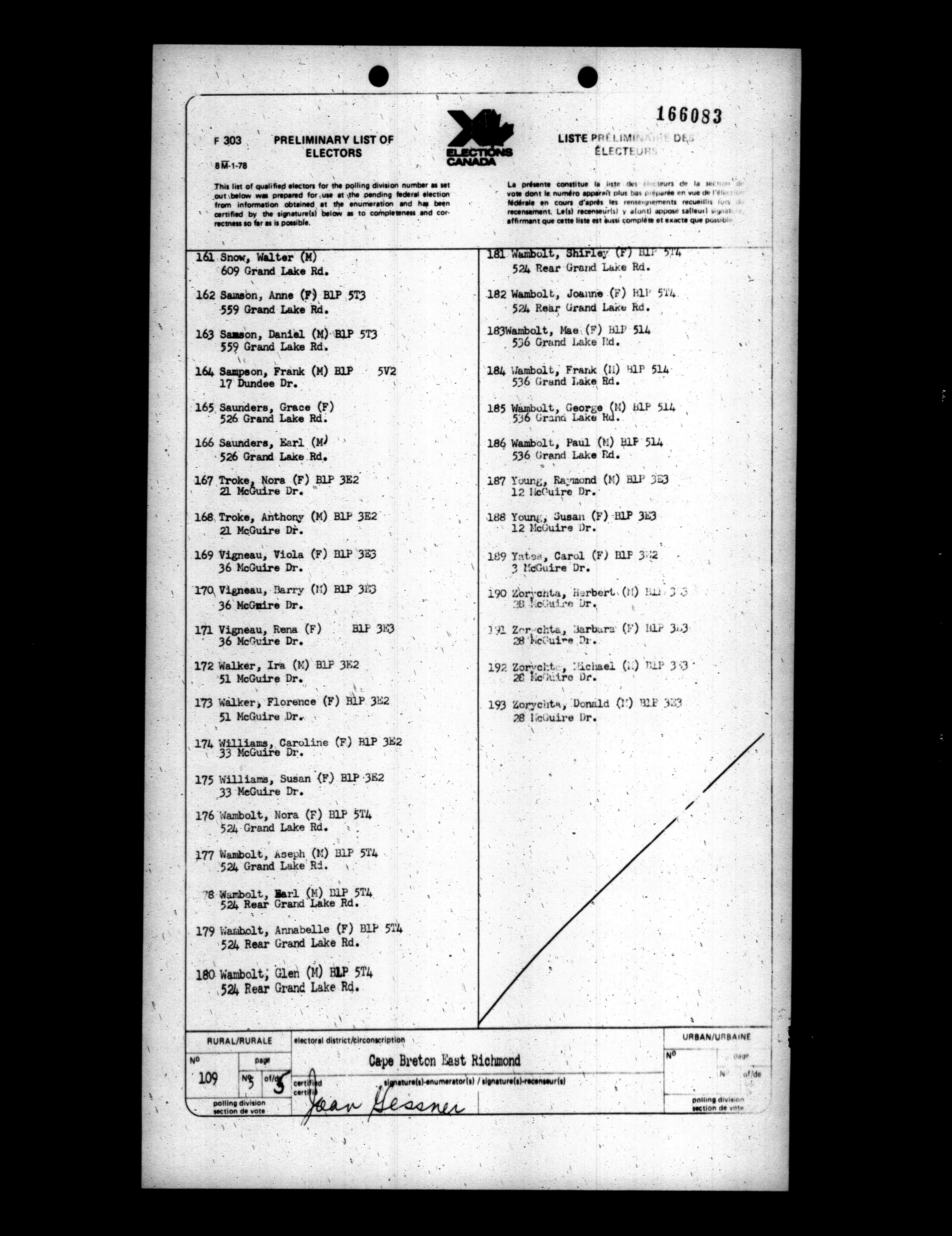 Office of the Chief Electoral Officer : Preliminary List of Electors : T-652