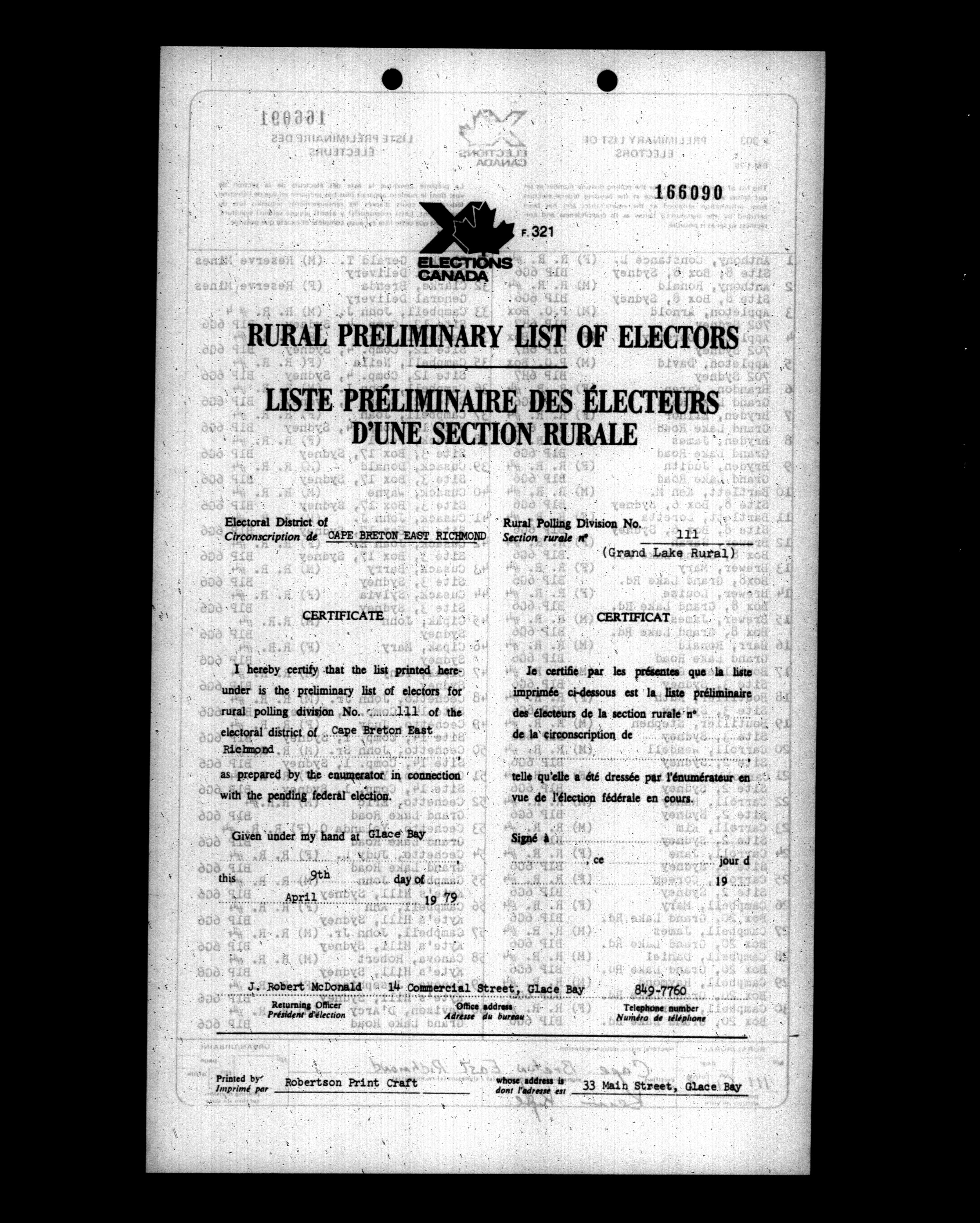 Office of the Chief Electoral Officer : Preliminary List of Electors : T-652