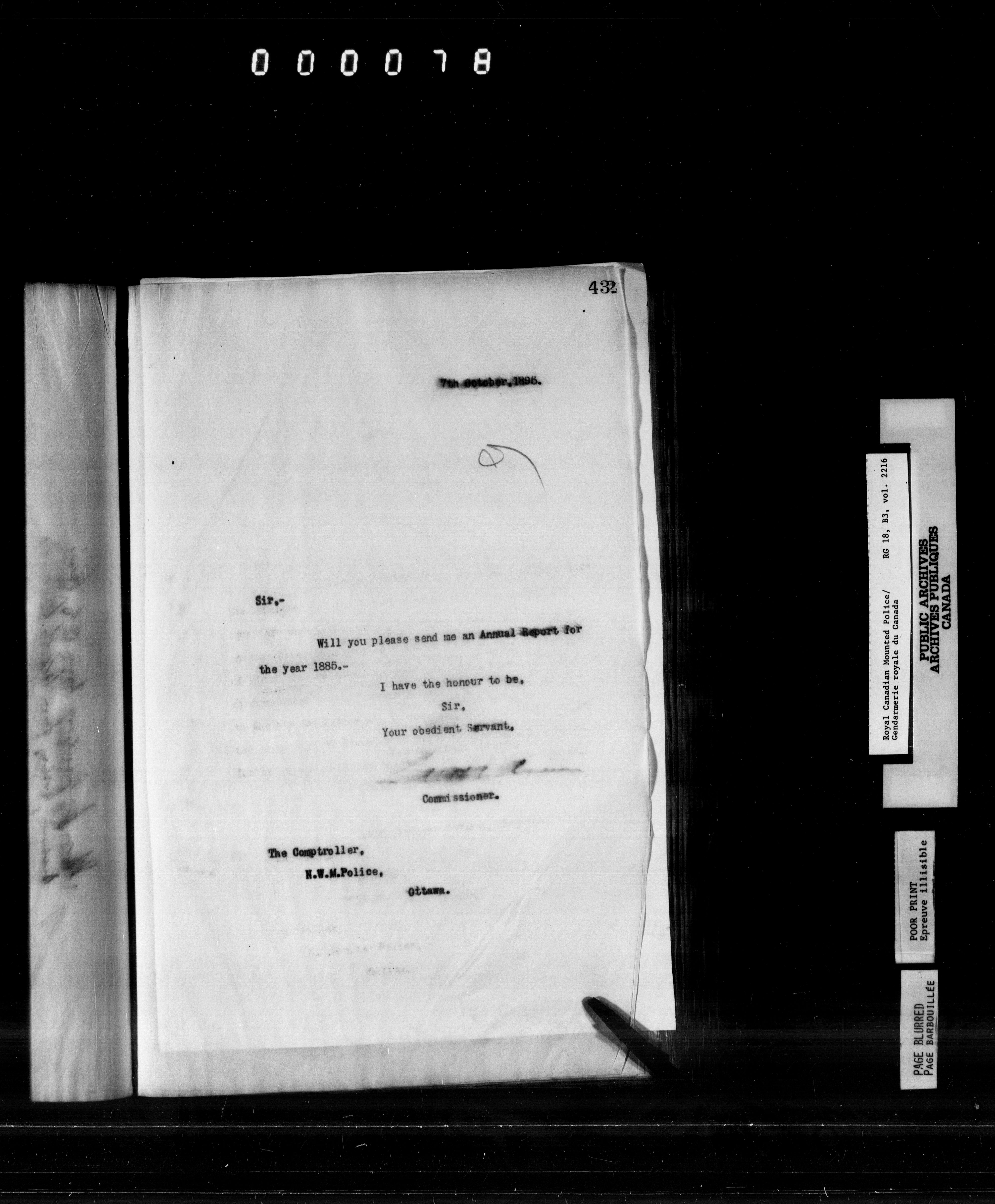 Royal Canadian Mounted Police : Letterbooks to the Comptroller (1881-1906) : T-6561