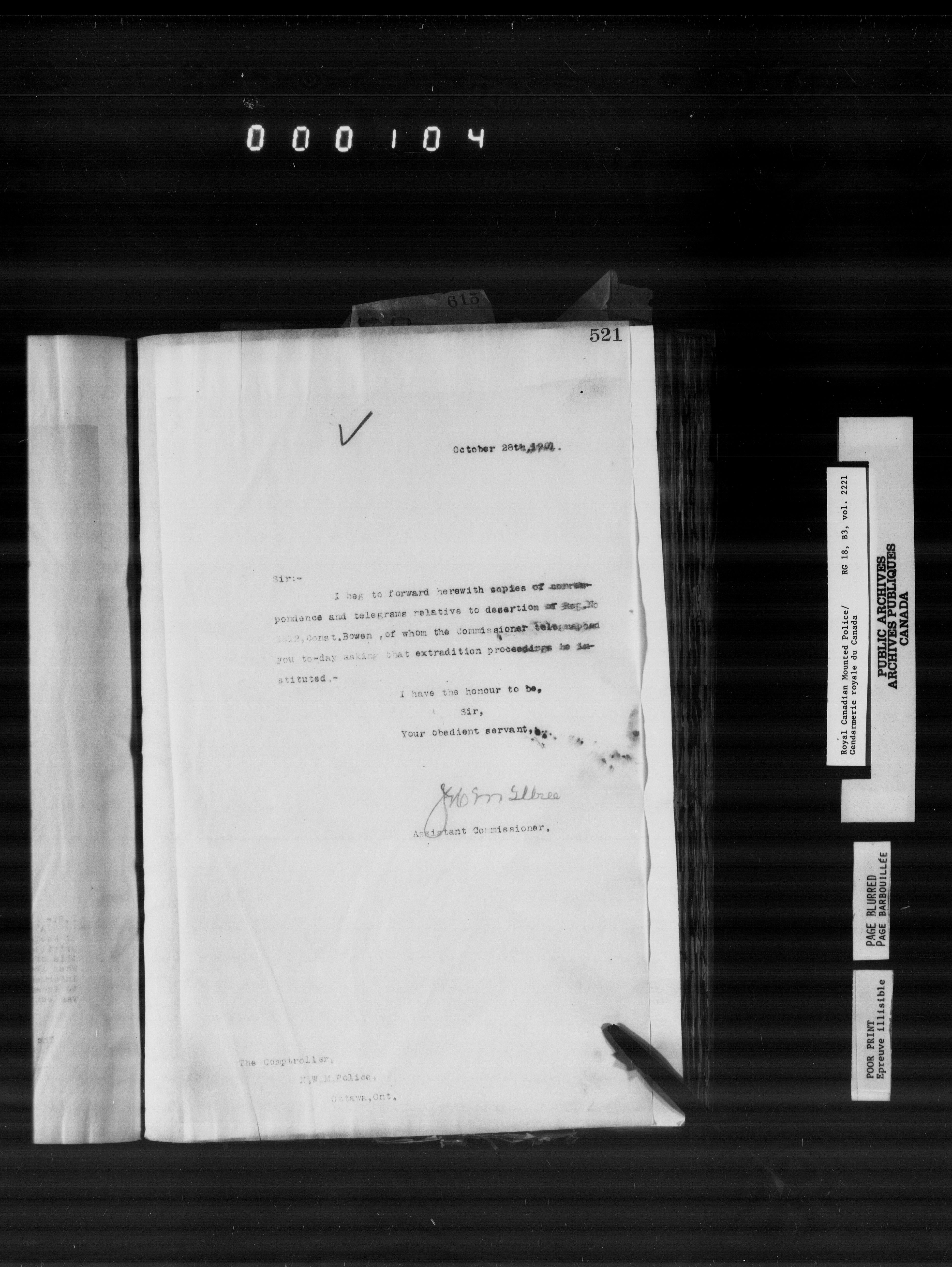 Royal Canadian Mounted Police : Letterbooks to the Comptroller (1881-1906) - 6566