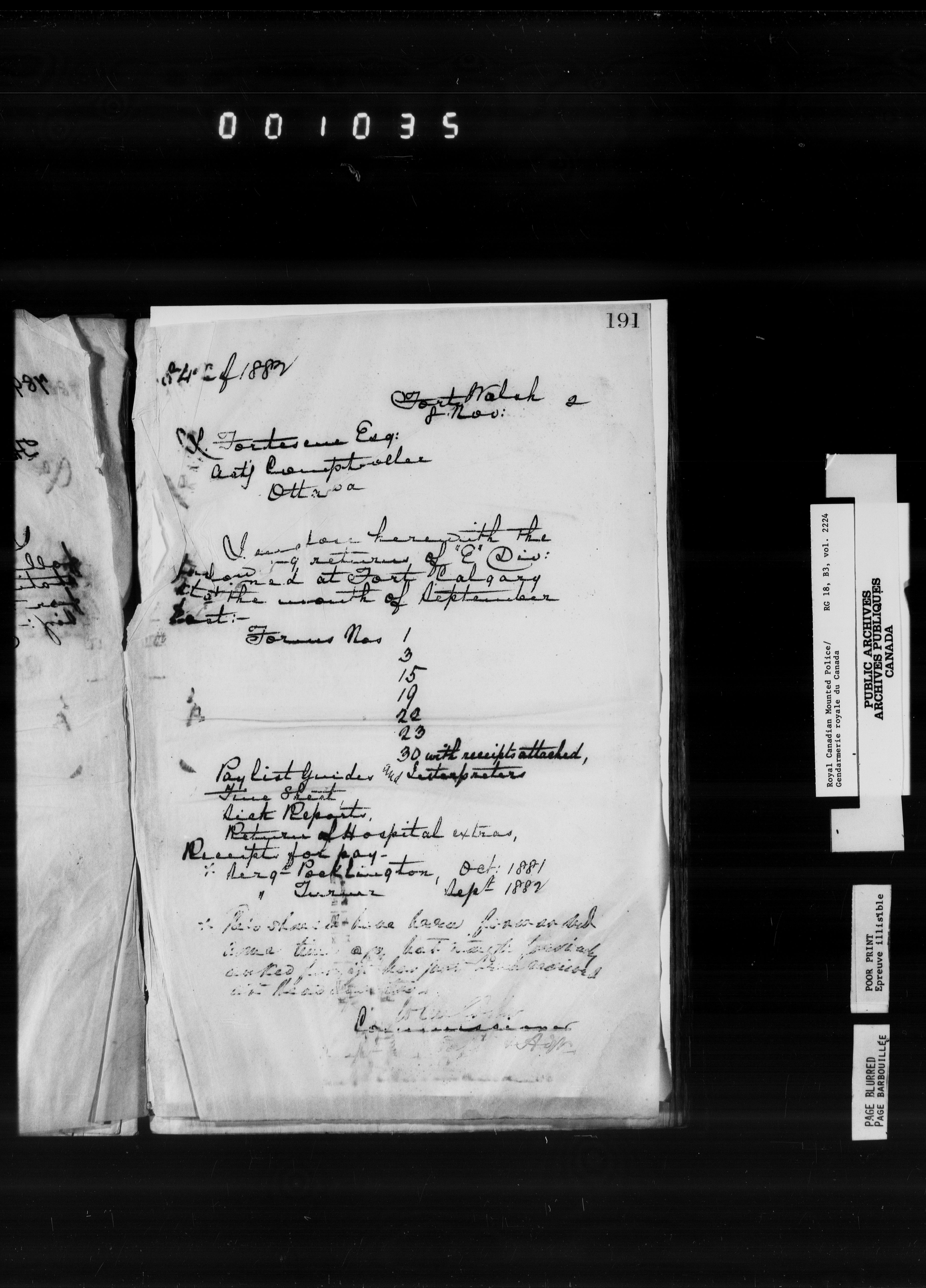 Royal Canadian Mounted Police : Letterbooks to the Comptroller (1881-1906) : T-6567