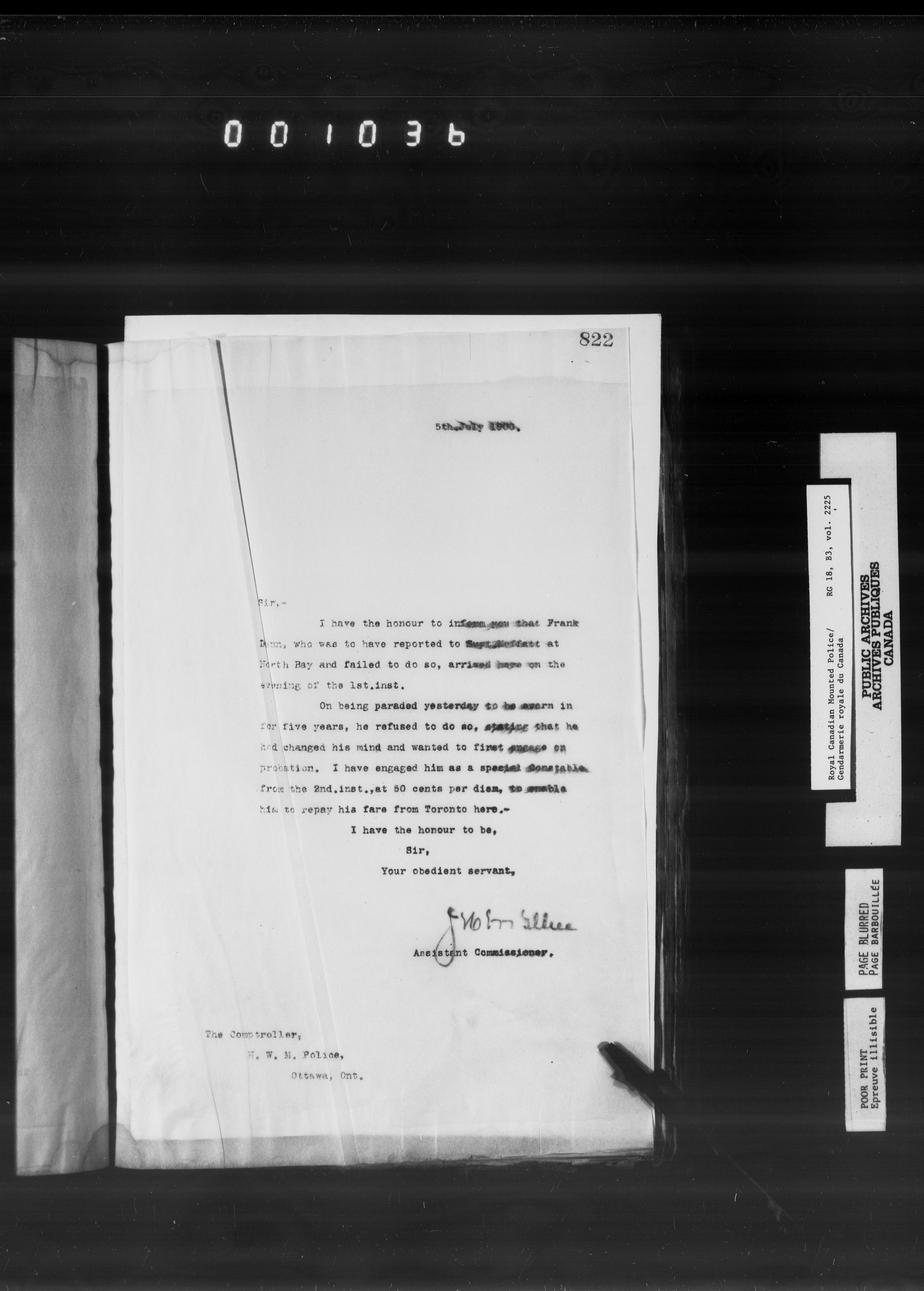 Royal Canadian Mounted Police : Letterbooks to the Comptroller (1881-1906) - 6568