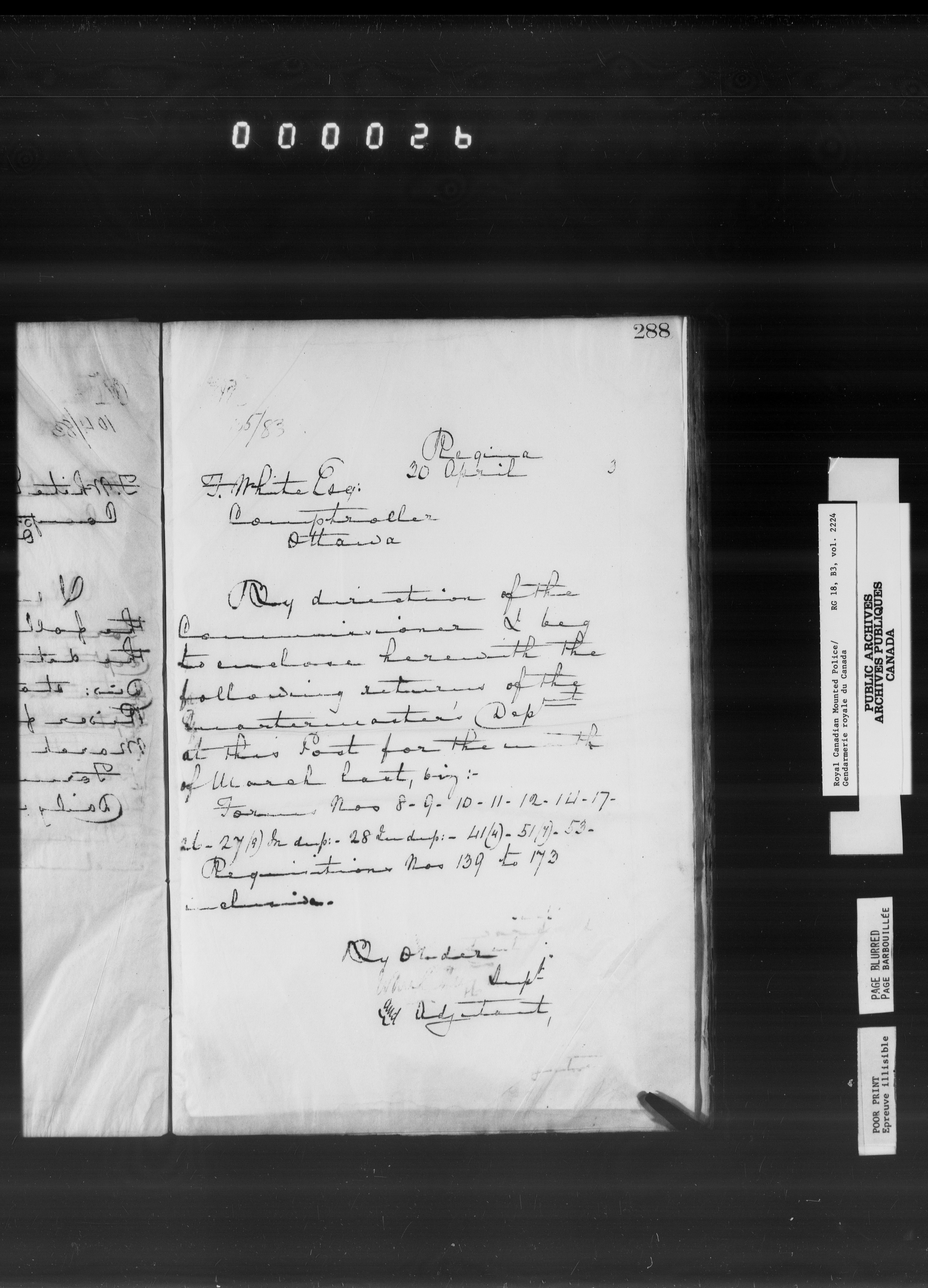 Royal Canadian Mounted Police : Letterbooks to the Comptroller (1881-1906) : T-6568