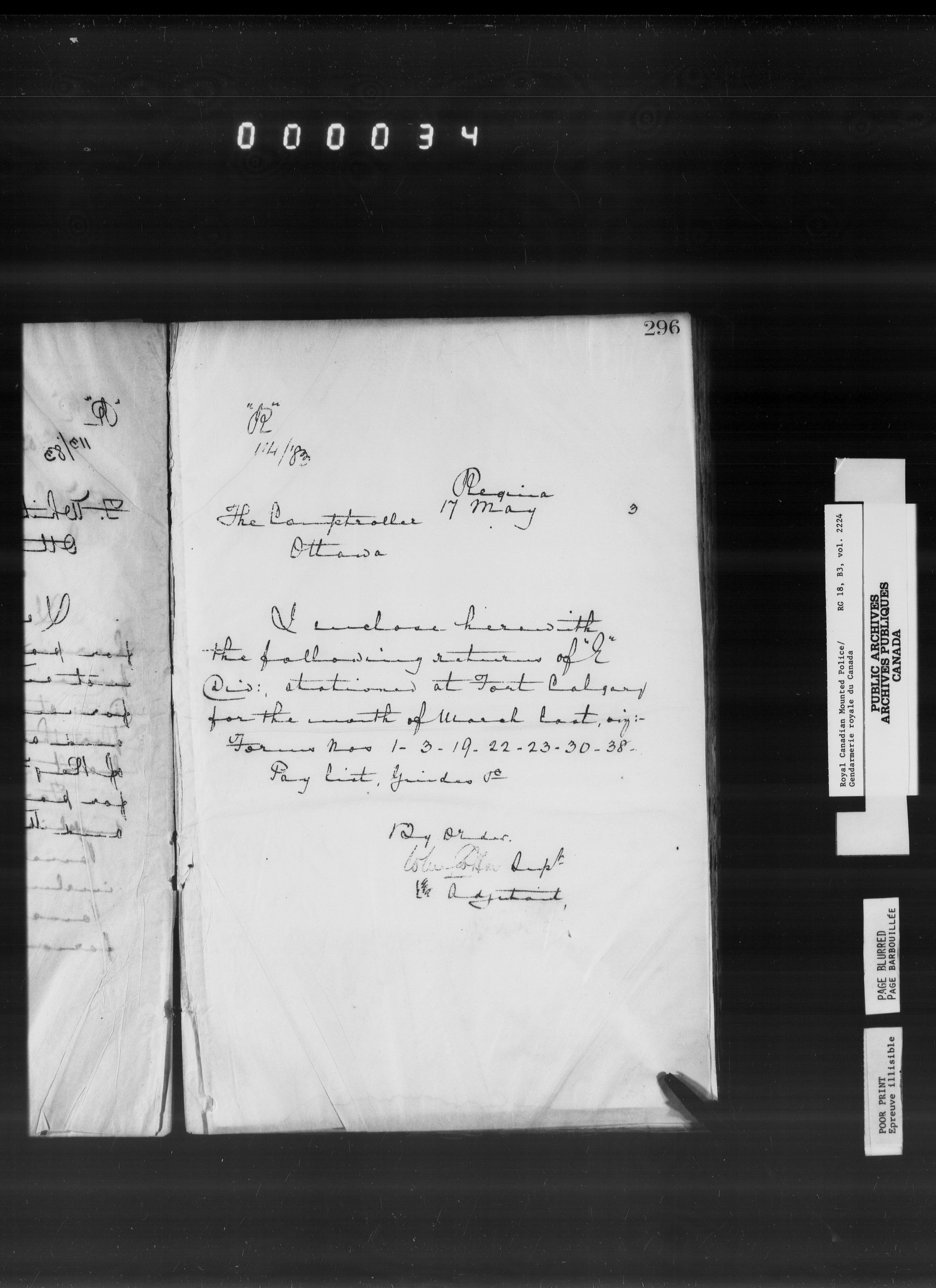 Royal Canadian Mounted Police : Letterbooks to the Comptroller (1881-1906) : T-6568